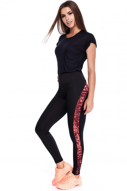 Sportowe legginsy z wysokim stanem i ozdobną wstawką na udzie. Kobiece legginsy w pełni kryjące. Wyprodukowane przez firmę Paulo Connerti.