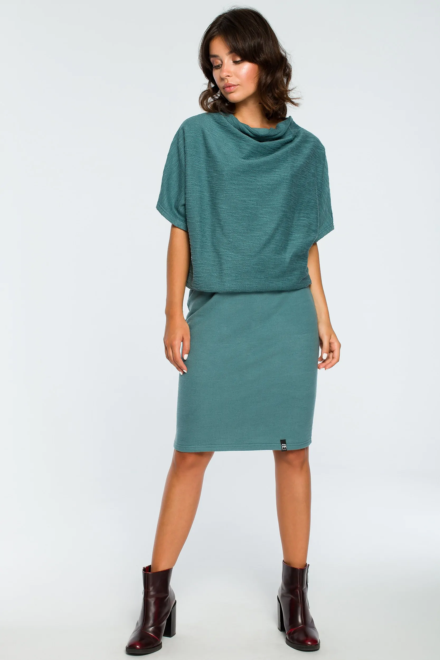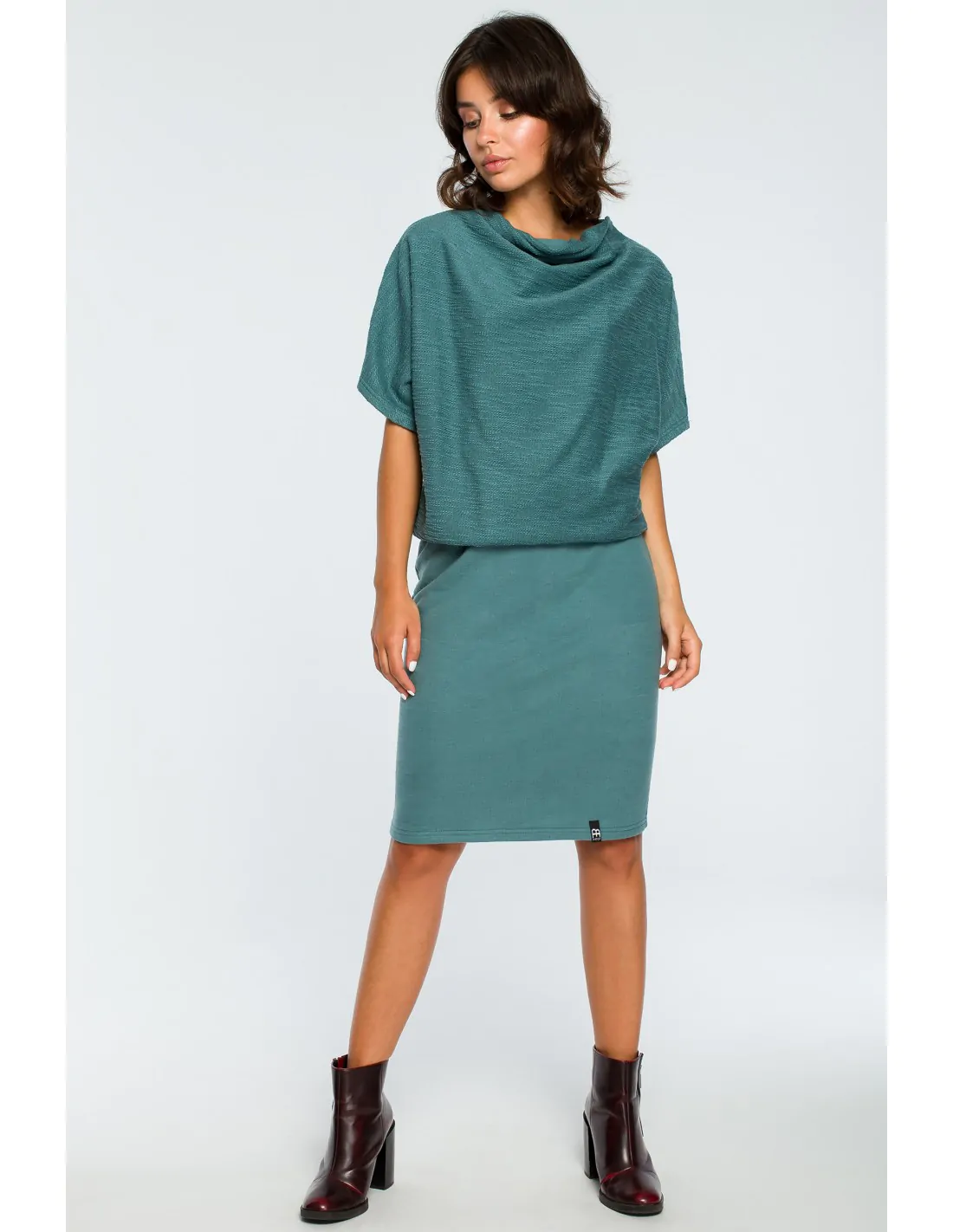 CM3994 Dopasowana sukienka z górą kimono - turkusowa