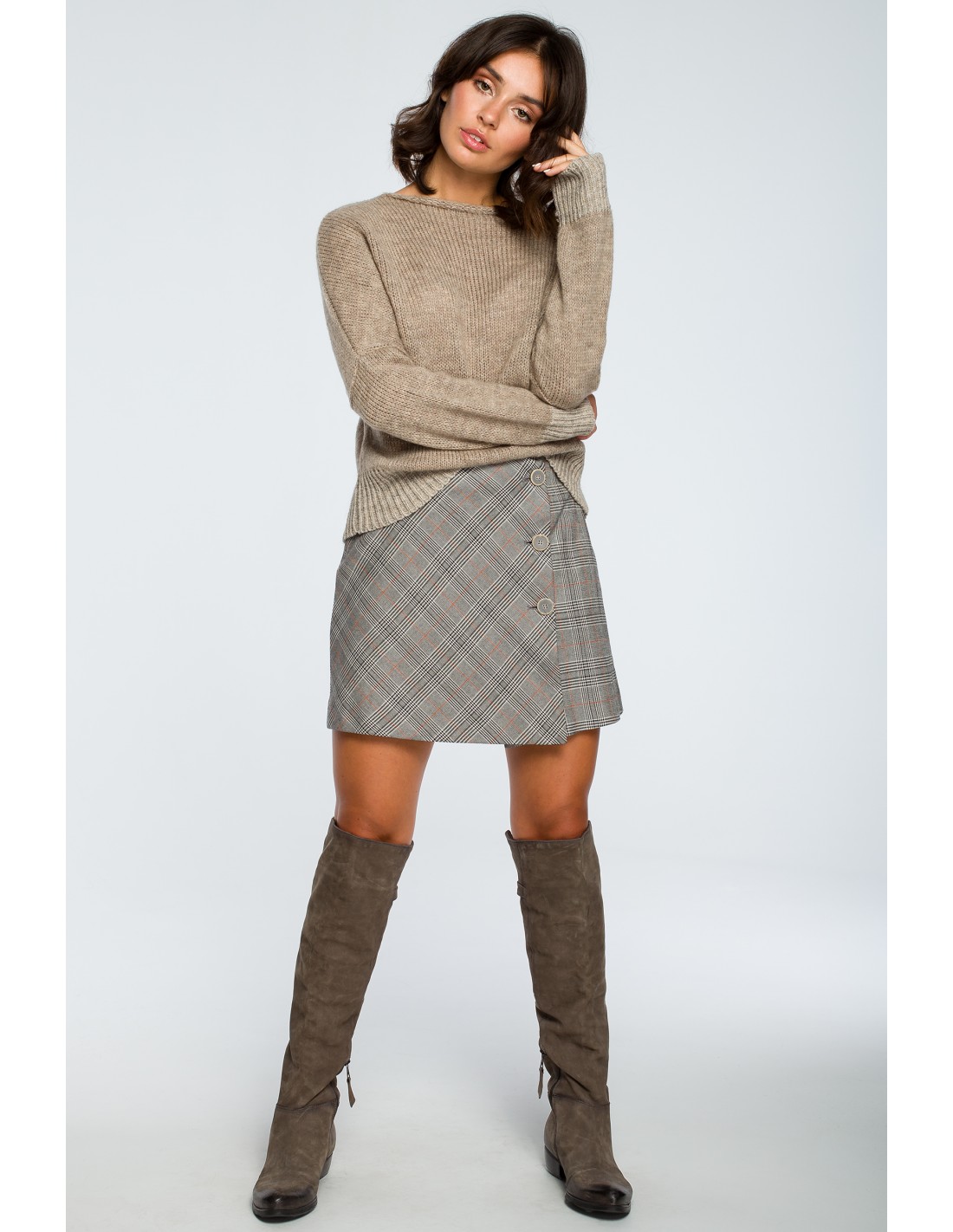 CM4002 Sweter oversize typu kimono - jasnobrązowy