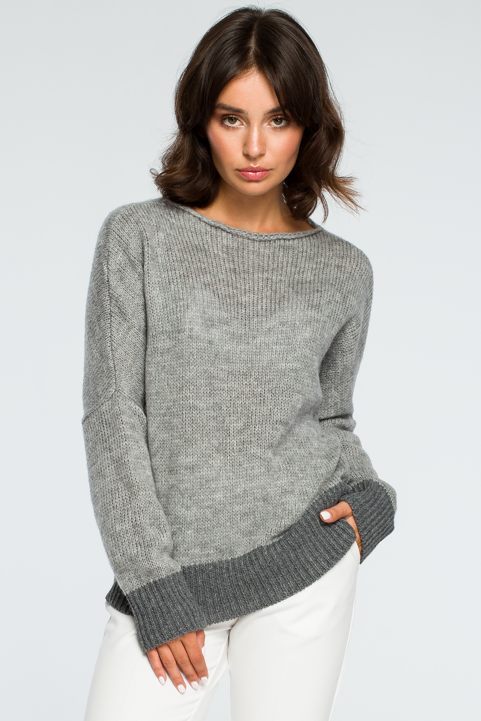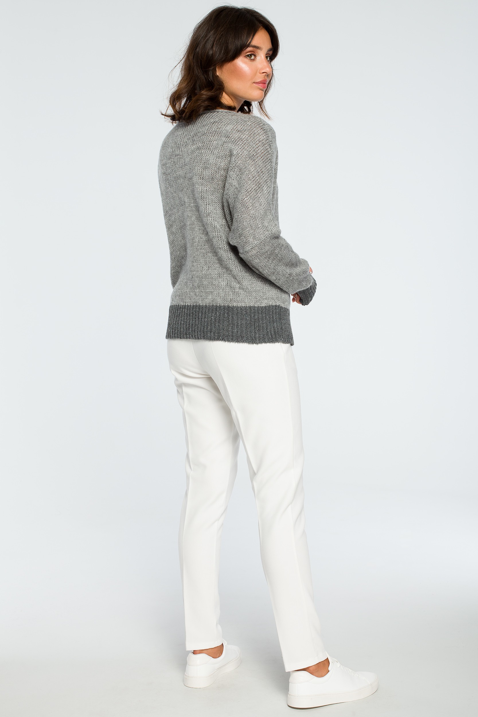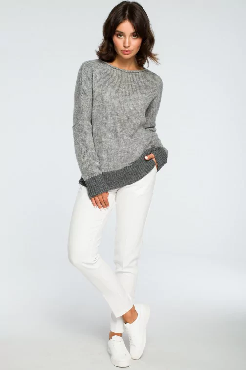 CM4002 Sweter oversize typu kimono - popielaty