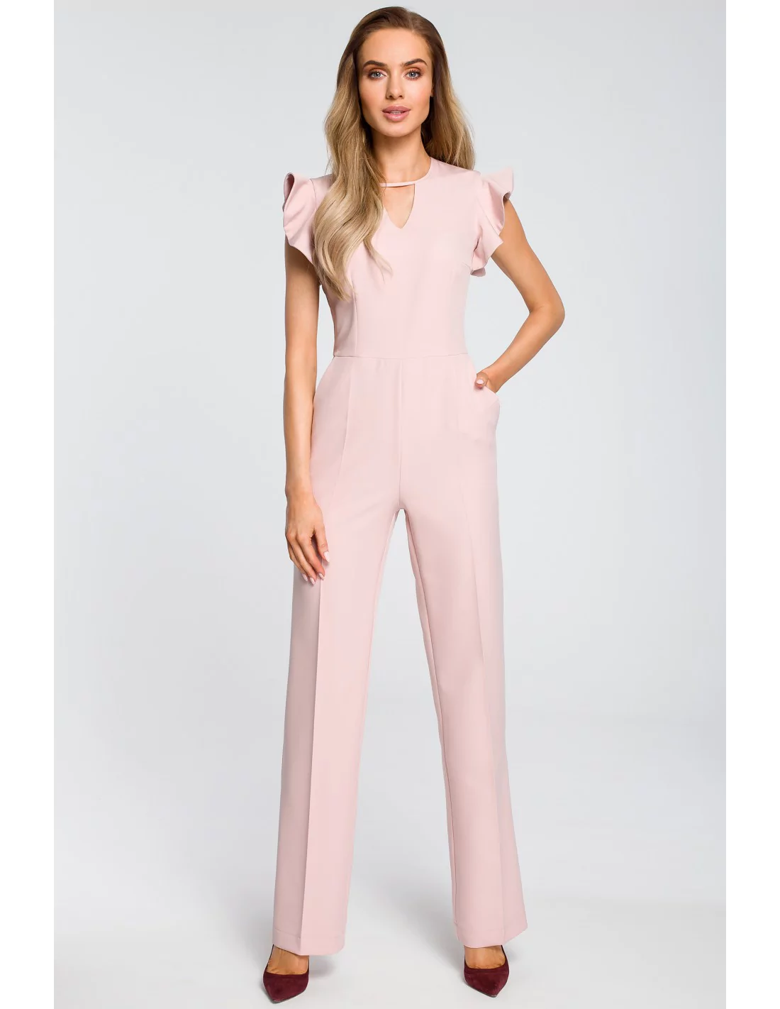CM4105 Elegancki kombinezon z falbankami - pudrowy
