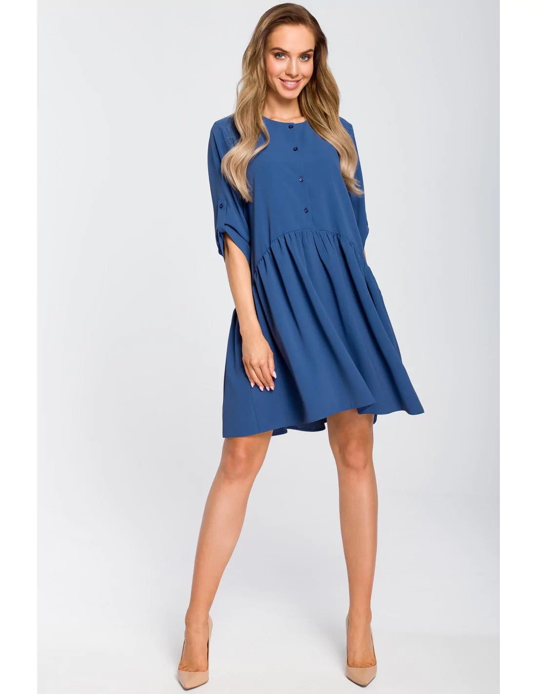 CM4108 Luźna sukienka rozkloszowana - niebieska