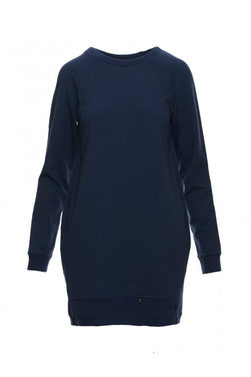 Bluza - tunika z rozcięciami po bokach i ściągaczem na dole - granatowa