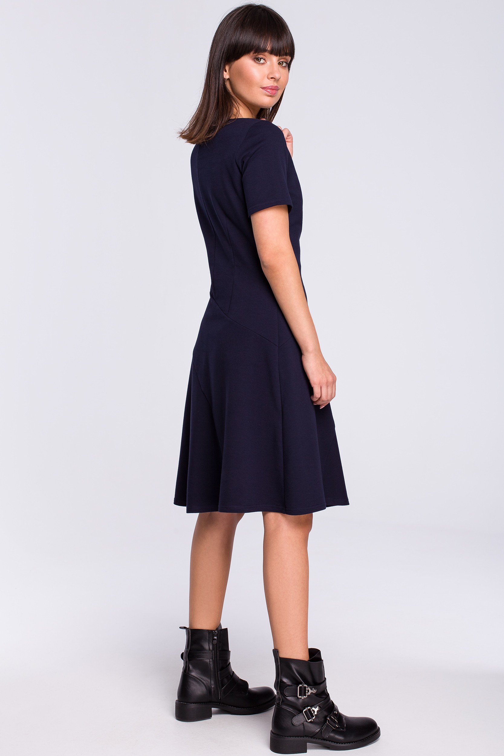 Lekko rozkloszowana sukienka z godetem - granatowa