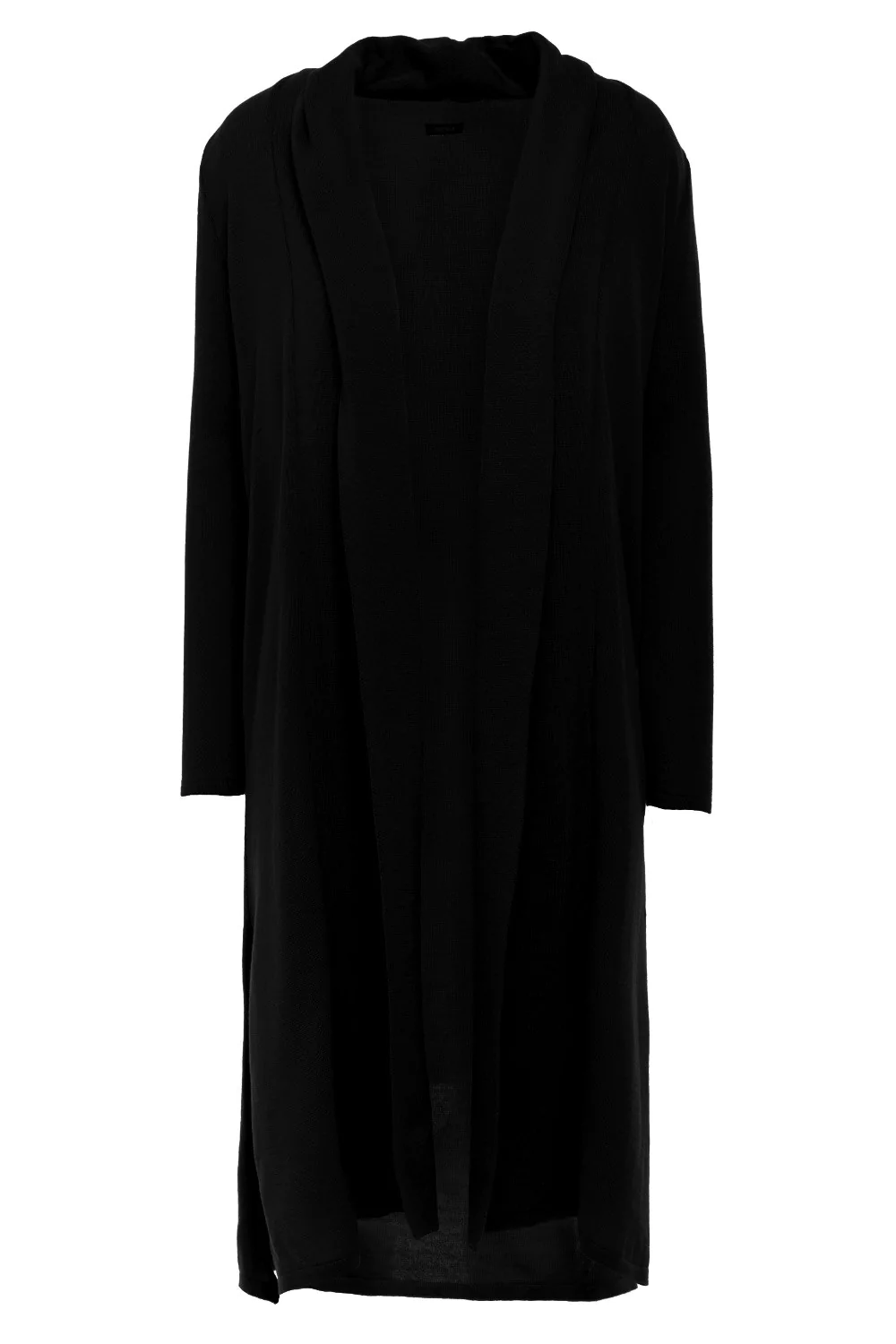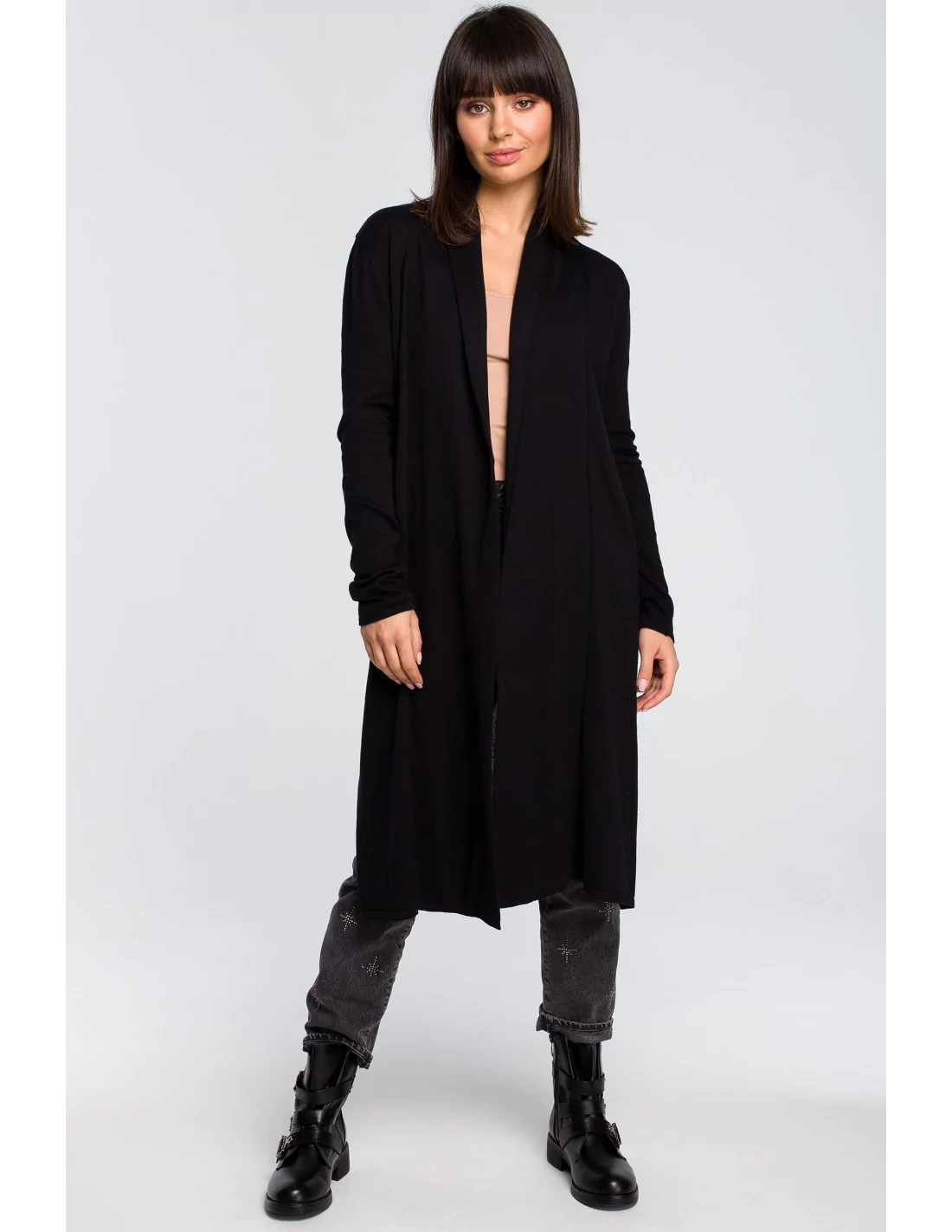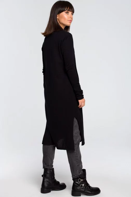 CM4149 Długi kardigan z podwójnym kołnierzem - czarny