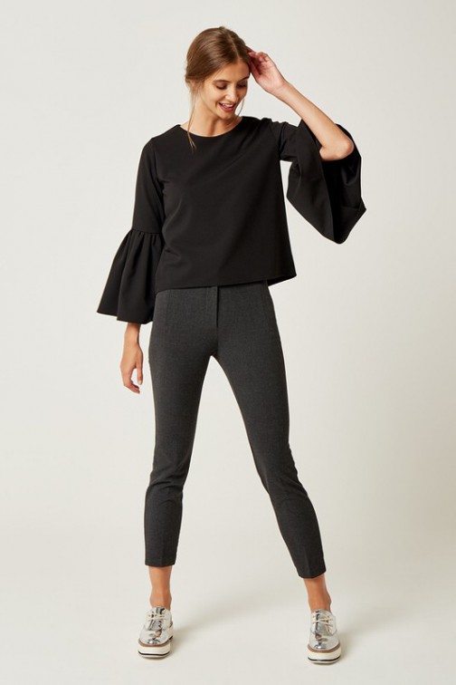 CM4238 Klasyczna bluzka z bufiastymi rękawami - czarna