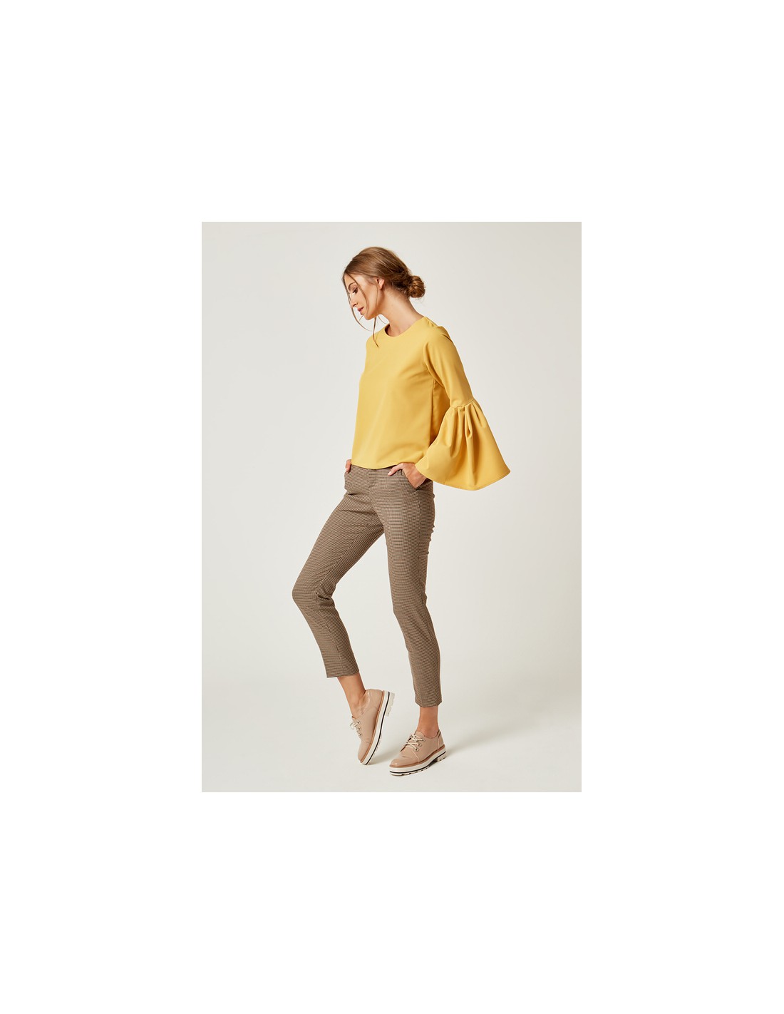 CM4238 Klasyczna bluzka z bufiastymi rękawami - miodowa