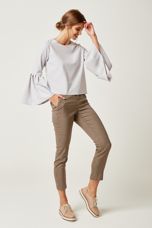 CM4238 Klasyczna bluzka z bufiastymi rękawami - szara
