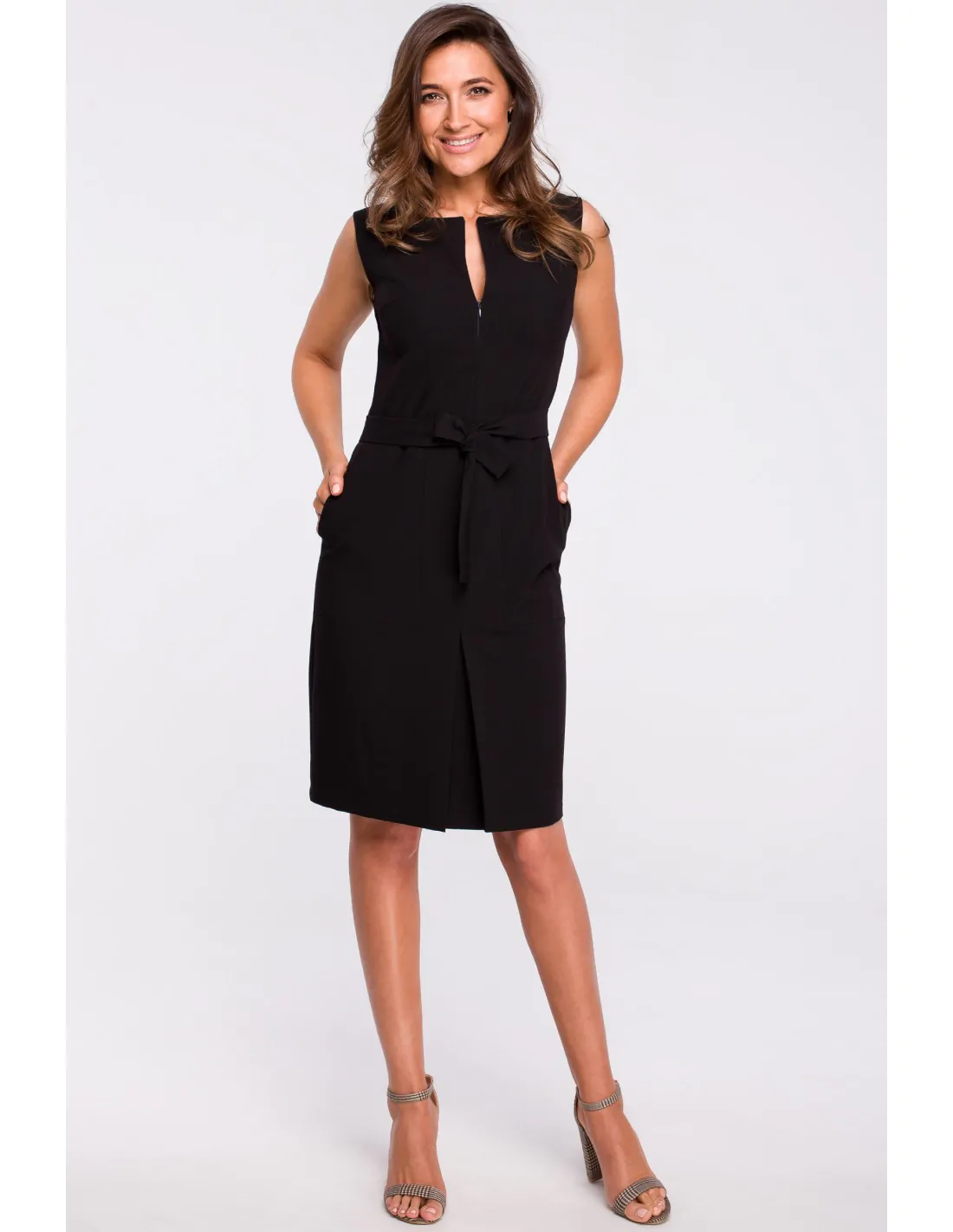 CM4365 Sukienka z kontrafałdą i kieszeniami - czarna