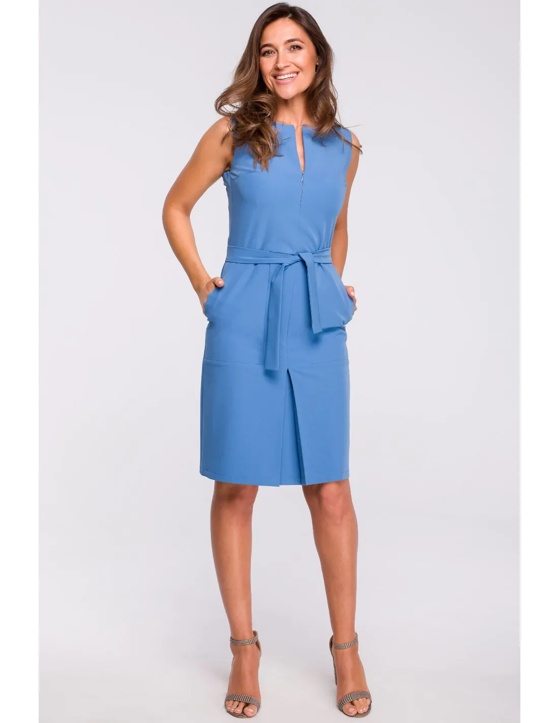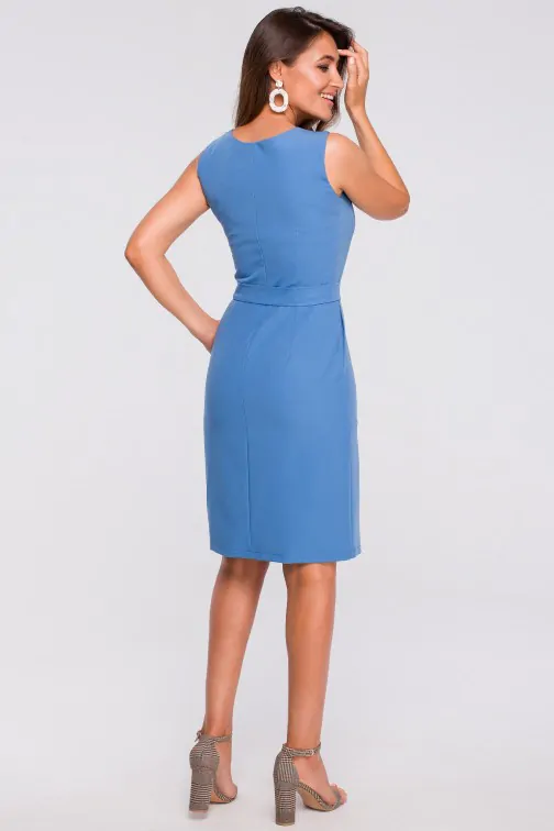 CM4365 Sukienka z kontrafałdą i kieszeniami - niebieska