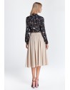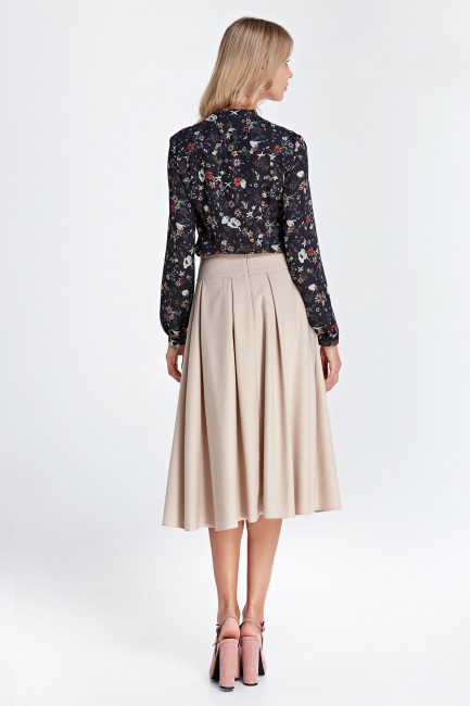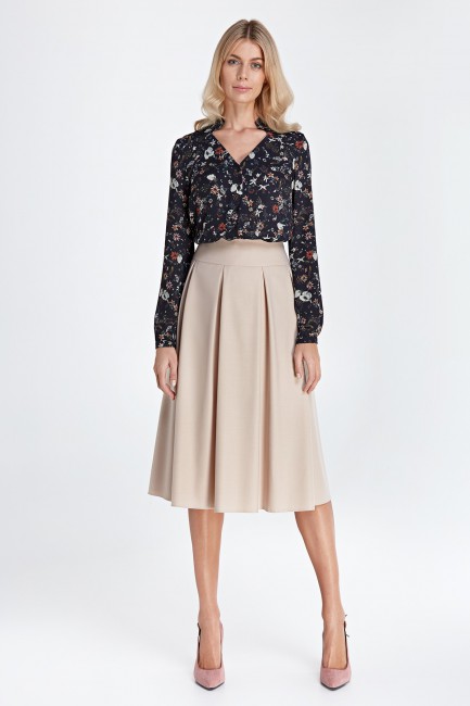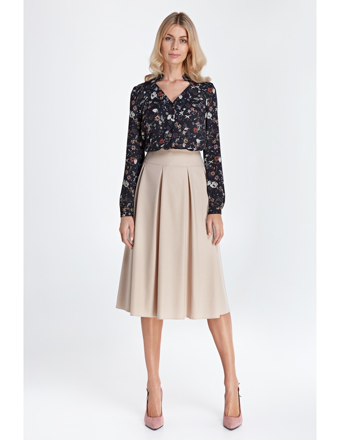 Oryginalna spódnica z wysokim stanem, rozszerzanym dołem w kontrafałdy. Spódnica na podszewce o długości MIDI. Wyprodukowano przez Colett w Polsce.