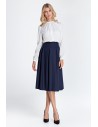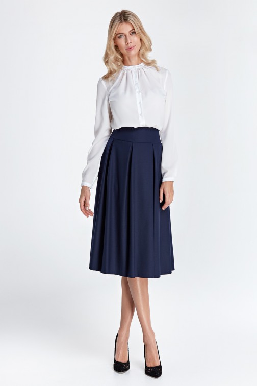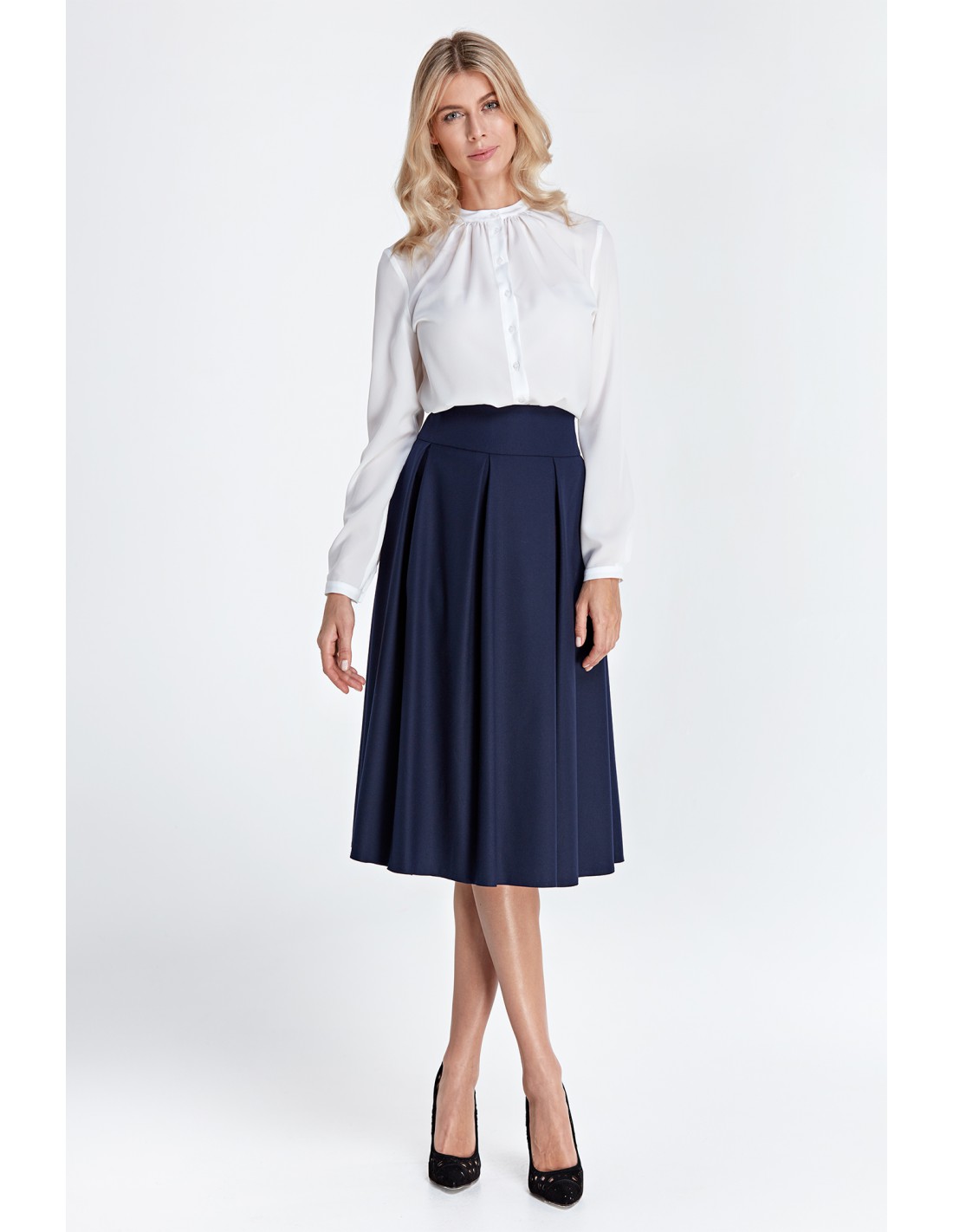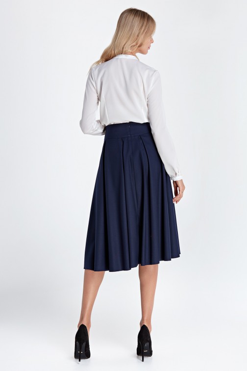 Oryginalna spódnica z wysokim stanem, rozszerzanym dołem w kontrafałdy. Spódnica na podszewce o długości MIDI. Wyprodukowano przez Colett w Polsce.