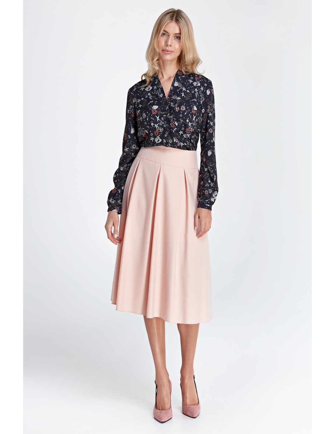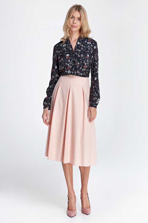 CM4554 Spódnica midi z kontrafałdami - różowa