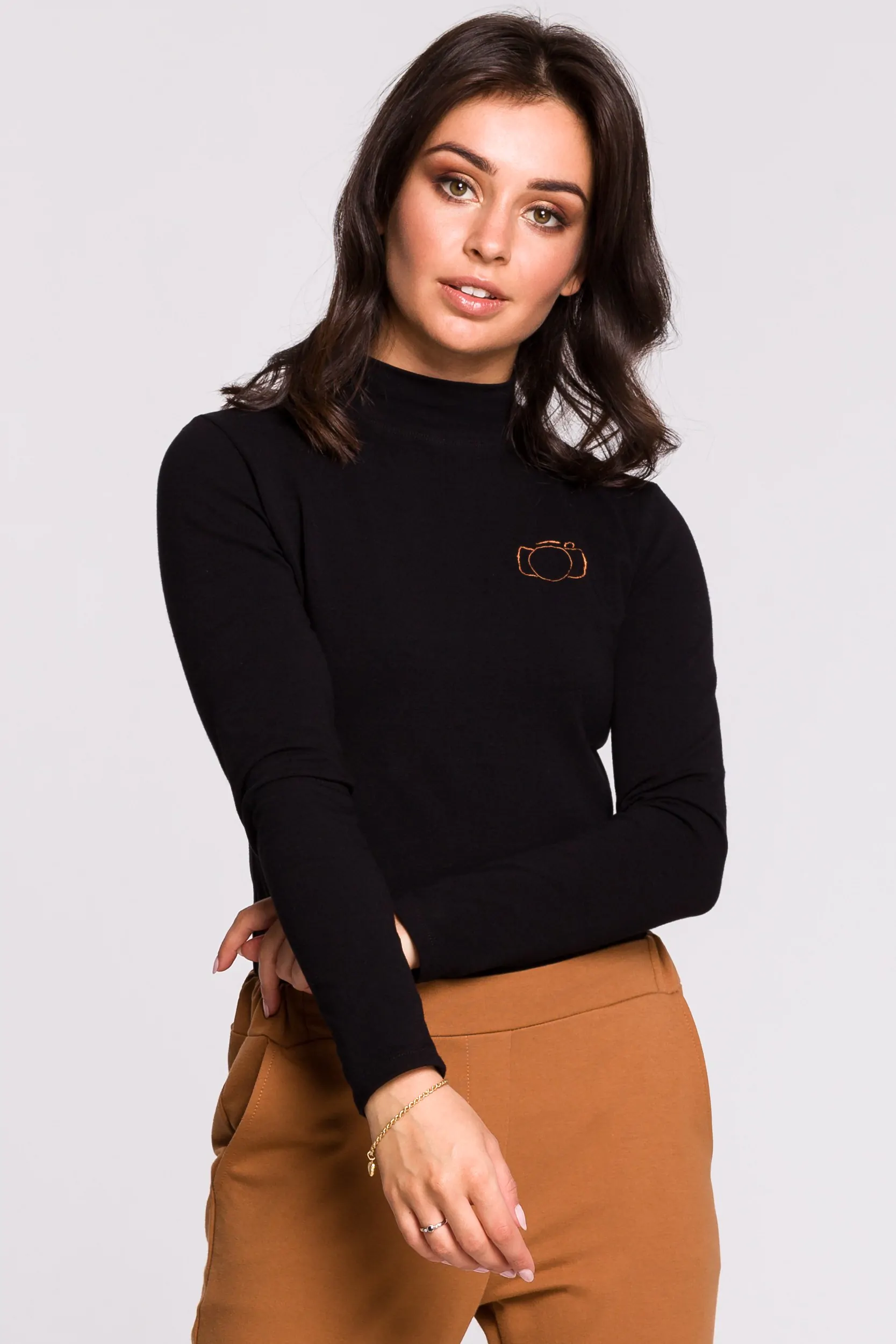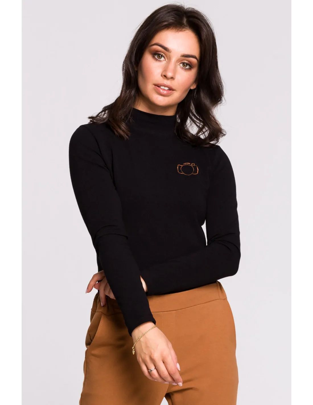 • dopasowany półgolf z haftem na piersi