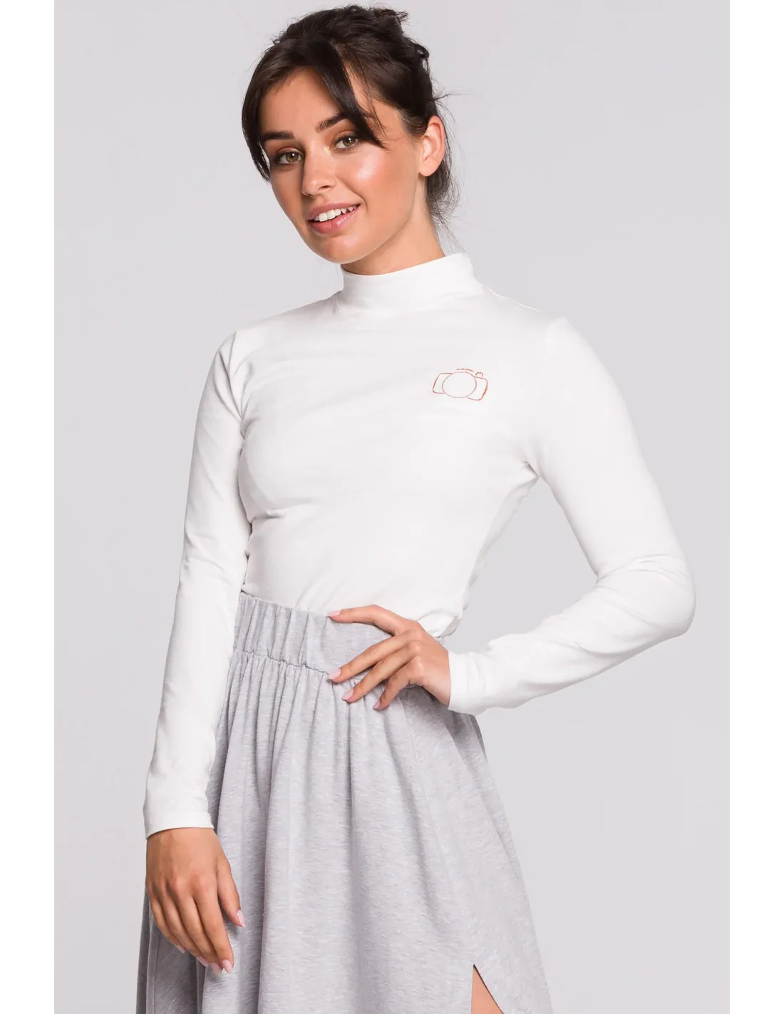 Basicowy, dopasowany golf, który będzie idealną bazą do codziennych stylizacji. Prosty krój z długimi rękawami, wykonany z lekkiej dzianiny z dodatkiem elastanu, dobrze dopasowuje się do sylwetki. Posiada ozdobny haft. Wyprodukowano w Polsce.