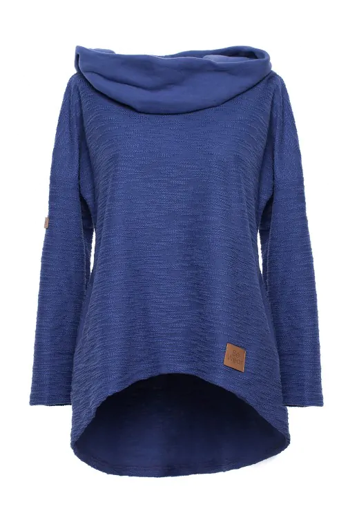CM4606 Bluza z szerokim kołnierzem i kapturem - indygo