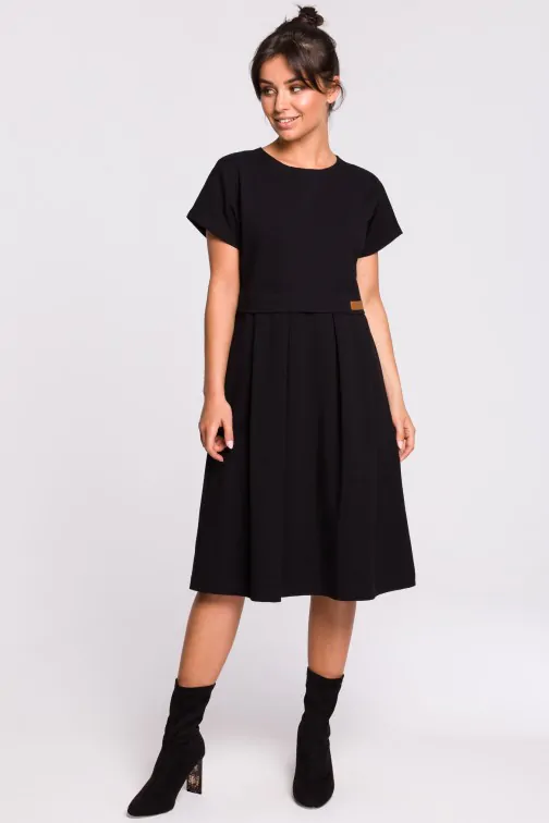 CM4609 Sukienka midi warstwowa - czarna