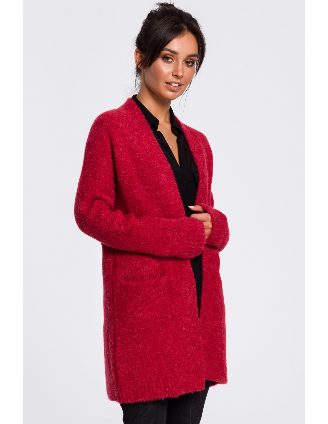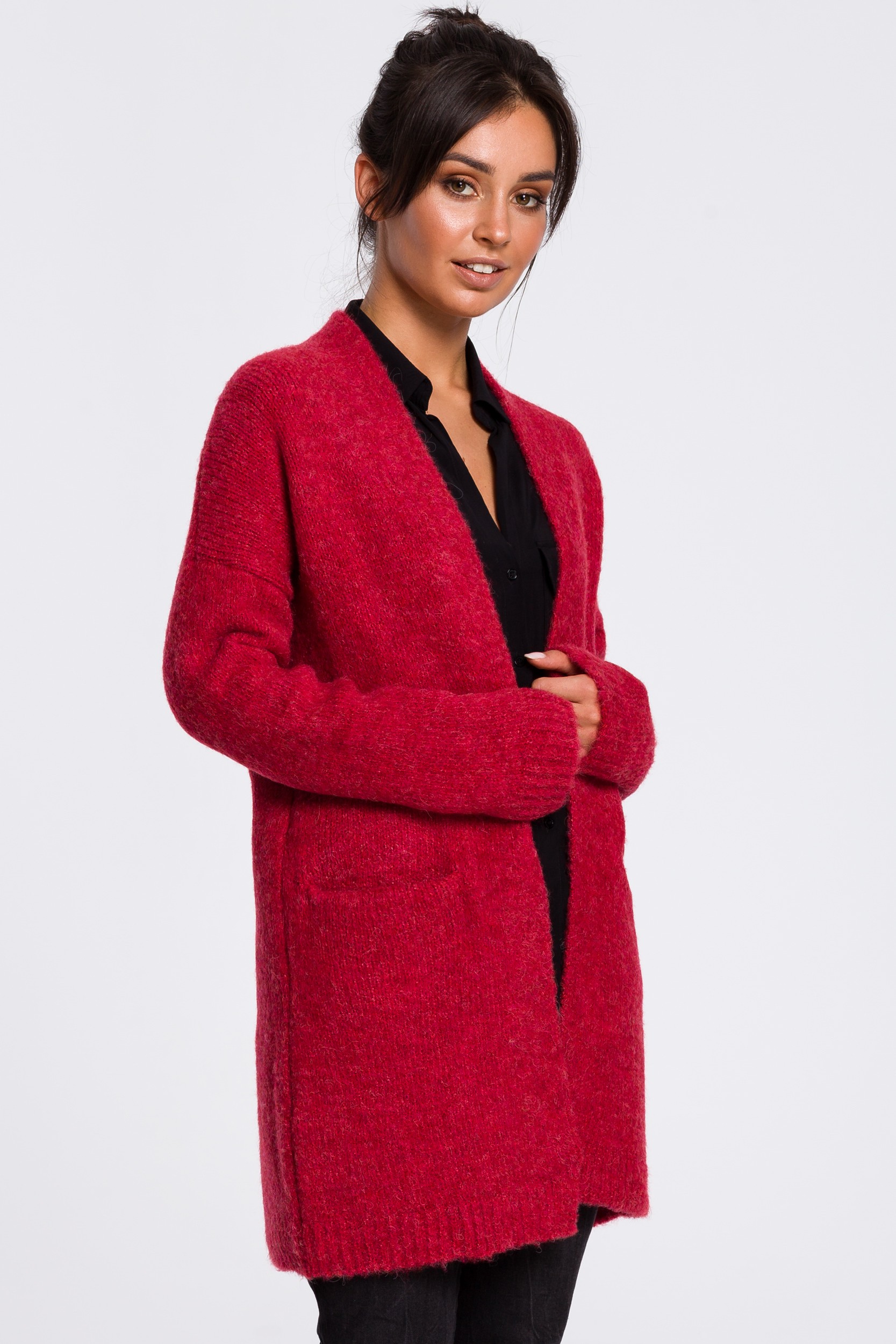 CM4620 Kardigan gładki z kieszeniami - malinowy