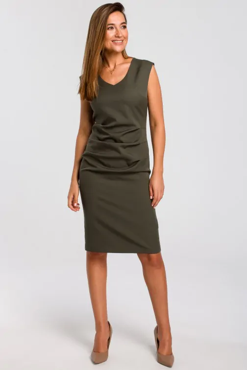 Sukienka z dekoltem i marszczeniami na przodzie - khaki