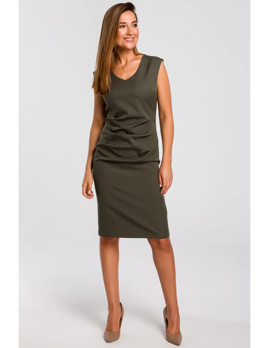 CM4636 Sukienka z dekoltem i marszczeniami na przodzie - khaki