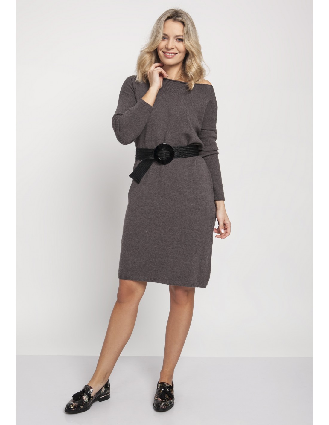 CM4670 Prosta dzianinowa sukienka - grafitowa