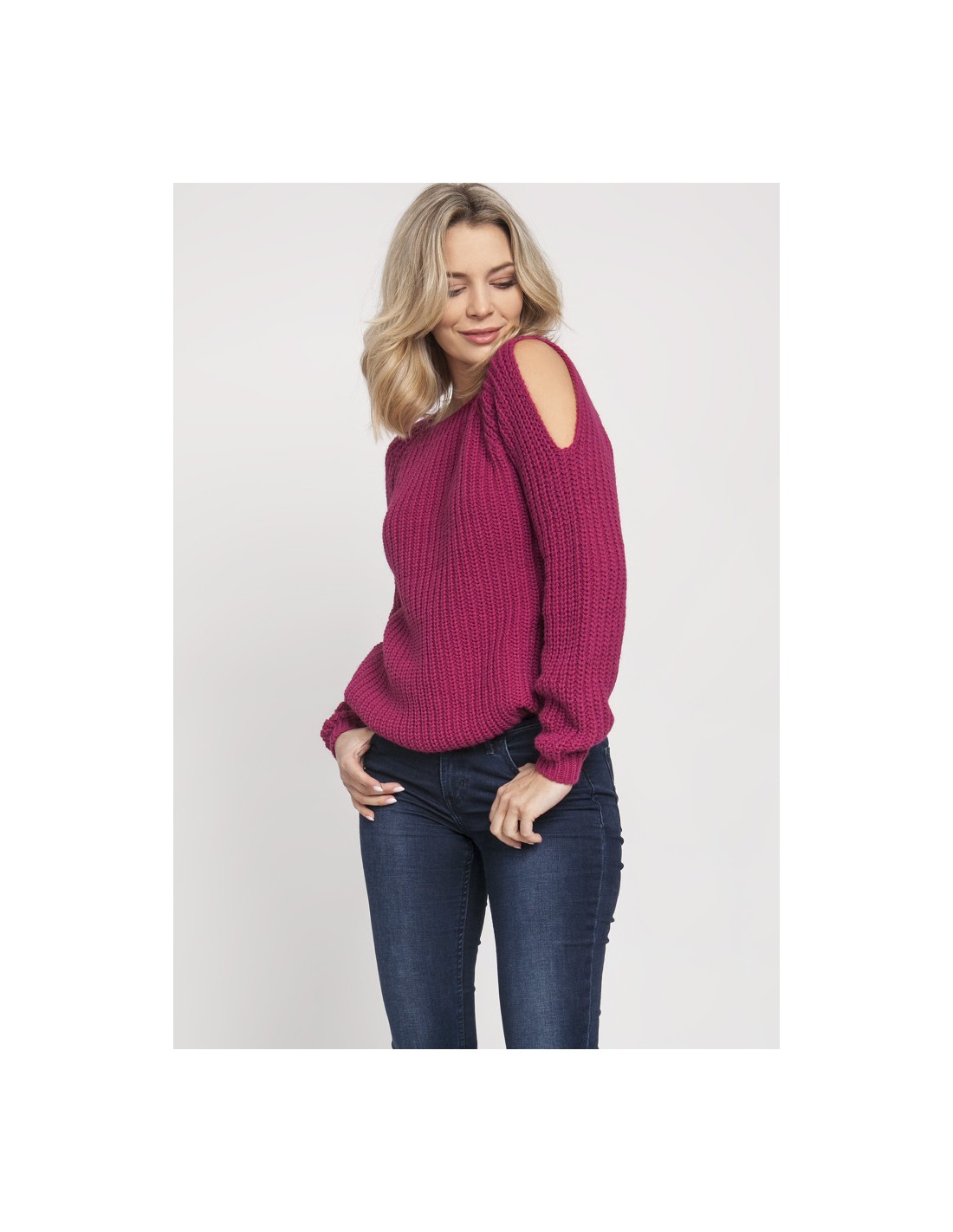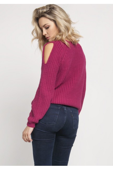 CM4673 Raglanowy sweter z wycięciami na rękawach - amarantowy