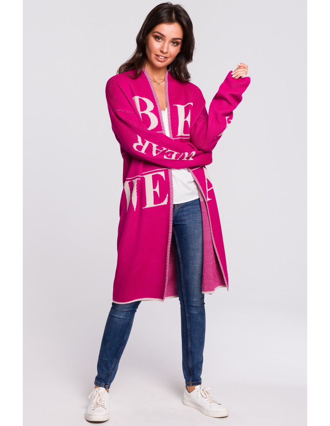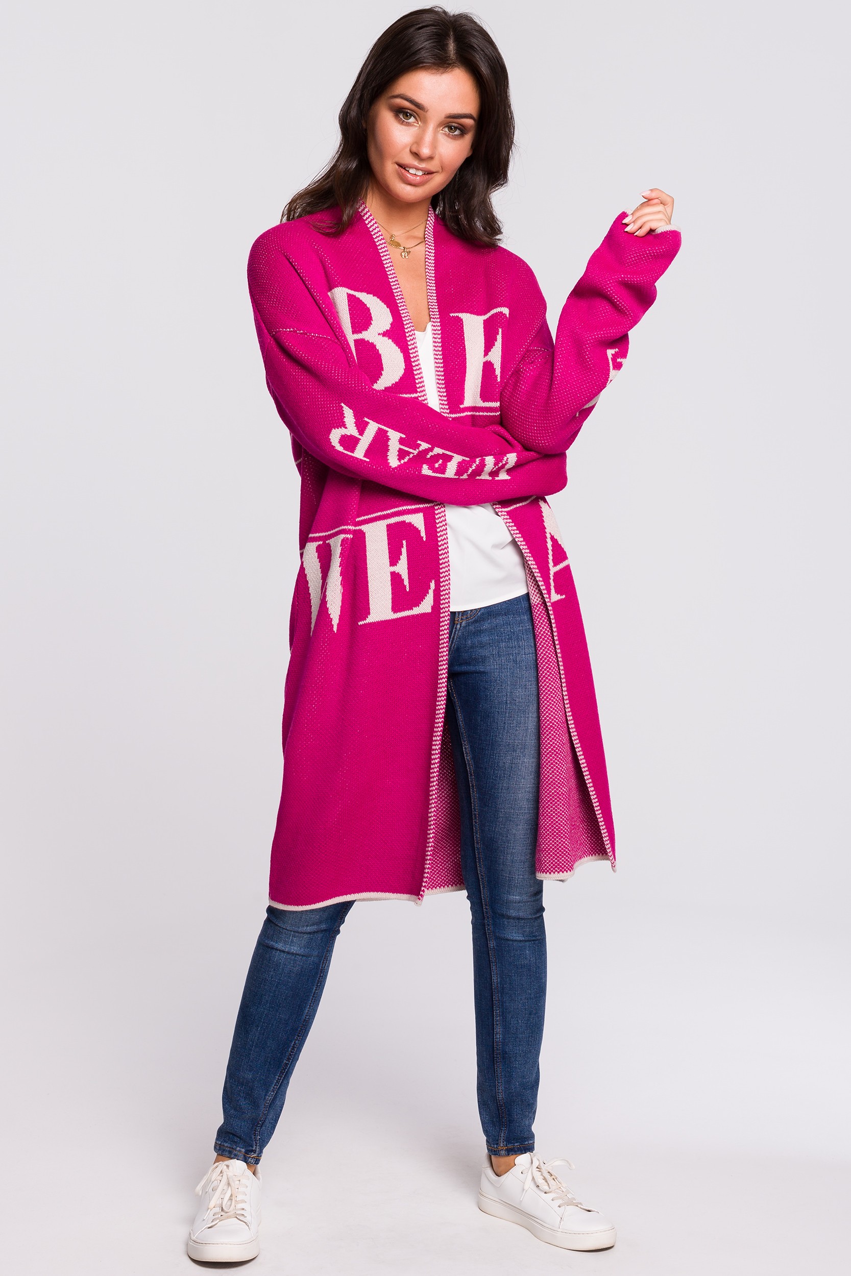 Klasyczny kardigan z niebanalnym, modnym wzorem - napisami z logo w kilku wariantach kolorystycznych do wyboru. Wyprodukowano w Polsce.