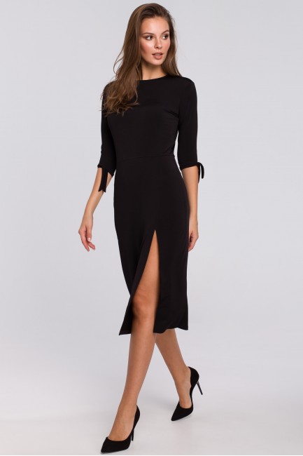 CM4946 Sukienka z wiązaniami przy rękawach - czarna
