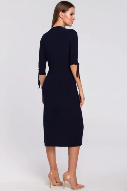 CM4946 Sukienka z wiązaniami przy rękawach - granatowa