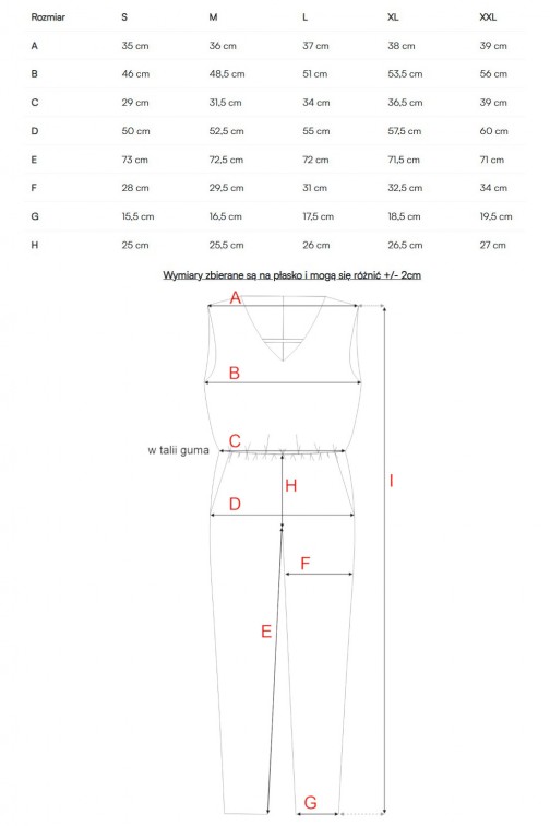 Elegancki, a zarazem bardzo wygodny kombinezon z długimi nogawkami. Wykonany z miękko układającej się na sylwetce tkaniny z domieszką elastanu, dzięki czemu jest elastyczny, a co za tym idzie będzie doskonale współgrał z każdym Twoim ruchem. Górna część odsłania ramiona, jest delikatnie zbluzowana i posiada ciekawy dekolt w kształcie V połączony poziomym paskiem. Dzięki niemu dekolt będzie zawsze w nienagannej formie! W pasie znajduje się gumka, która zaznacza talię i wyrównuje proporcje sylwetki. Kombinezon może być doskonałą alternatywą dla sukienki na specjalne okazje, sprawdzi się również w codziennych stylizacjach. Wyprodukowany w Polsce.