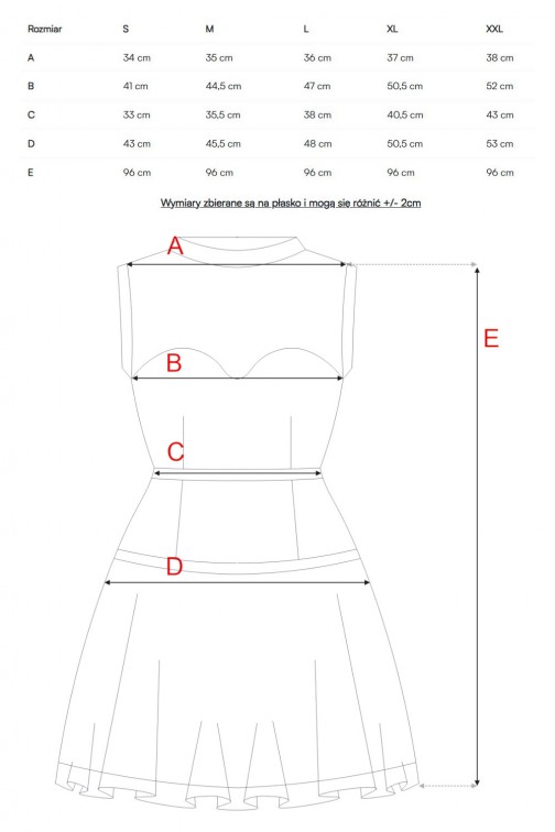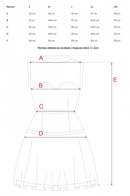 SKŁAD: 95% poliester, 5% elastan Tiul: 50% poliester, 50% nylon