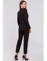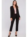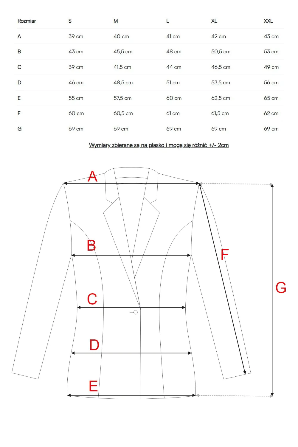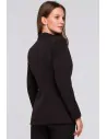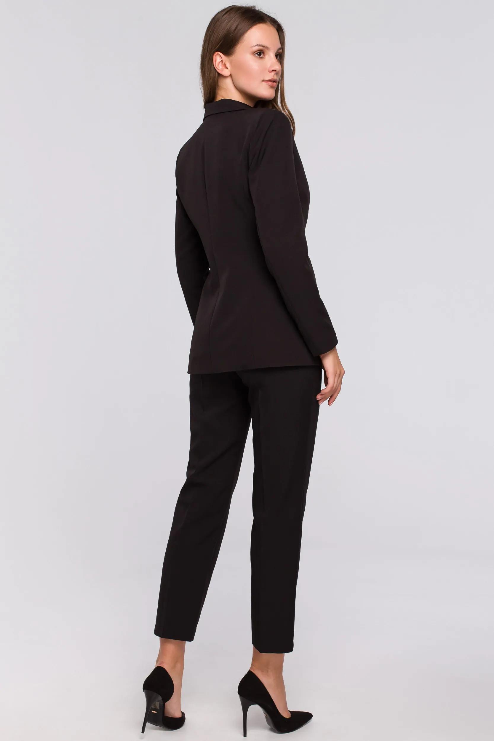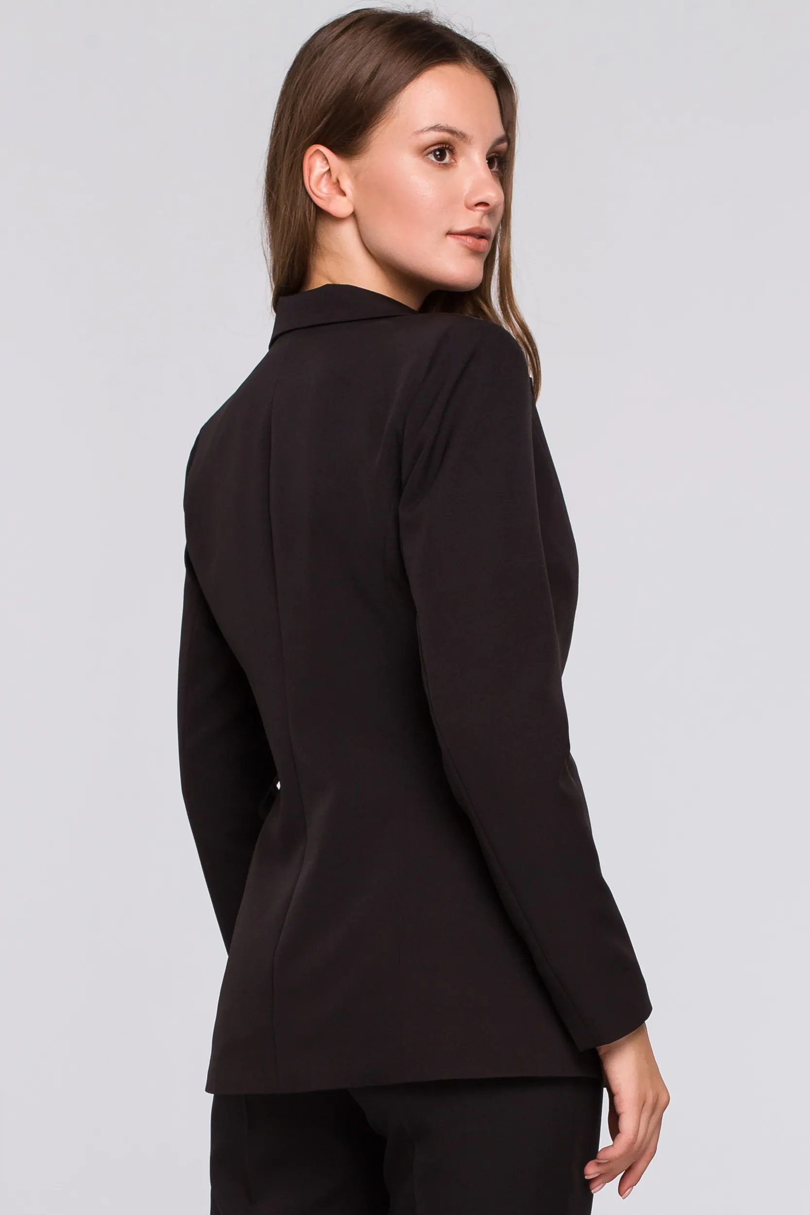 Elegancki żakiet, który stworzyliśmy z ogromną dbałością o szczegóły, dlatego tak perfekcyjnie układa się na sylwetce. Żakiet zapinany na guzik posiada klasyczny, lekko taliowany fason, wykładany kołnierz oraz w całości jest na podszewce. Ten elegancki czarny żakiet to nie tylko element biurowych stylizacji, choć w tej roli sprawdzi się znakomicie. Możesz nosić go zarówno do pracy, na wyjątkowe uroczystości, jak i na co dzień. Jedną z naszych propozycji jest zestawienie ze spodniami typu cygaretki z kantem, które znajdziesz w naszej ofercie - te w identycznym kolorze stworzą modny total look! Żakiet wyprodukowany w Polsce.
