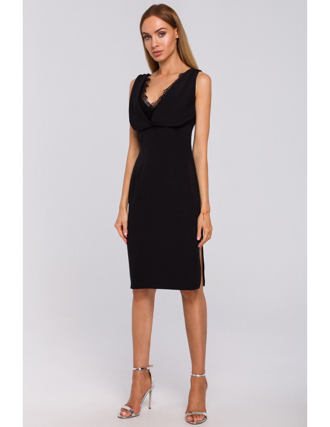 CM4996 Sukienka z koronkową wstawką w dekolcie - czarna