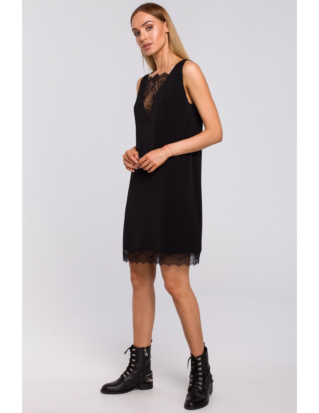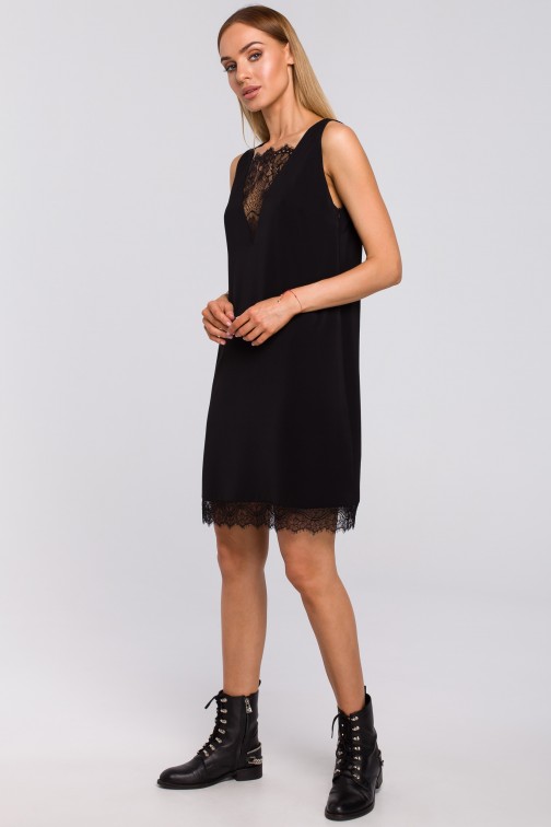 CM4998 Sukienka z koronkową wstawką z przodu i z tyłu - czarna