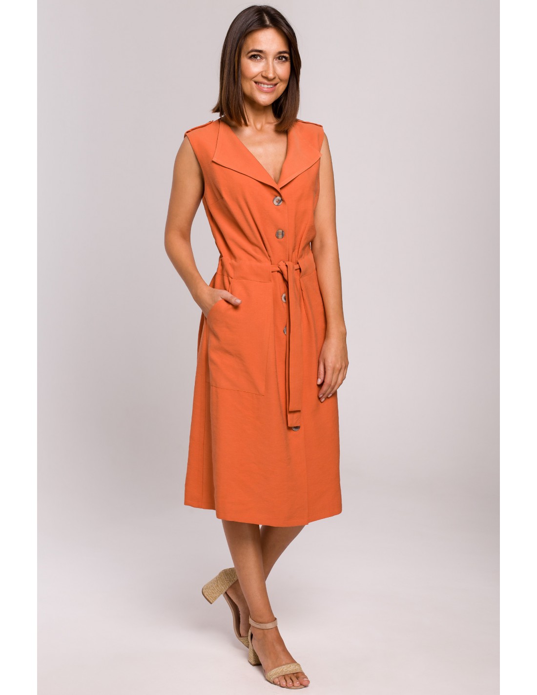 CM5167 Sukienka szmizjerka bez rękawów - pomarańczowa