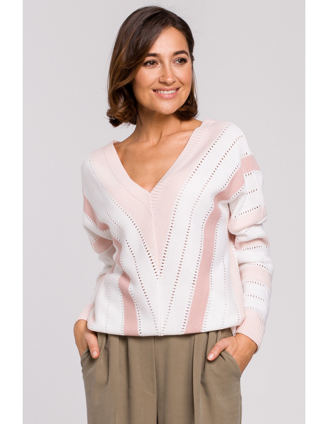 CM5177 Sweter w serek - różowy