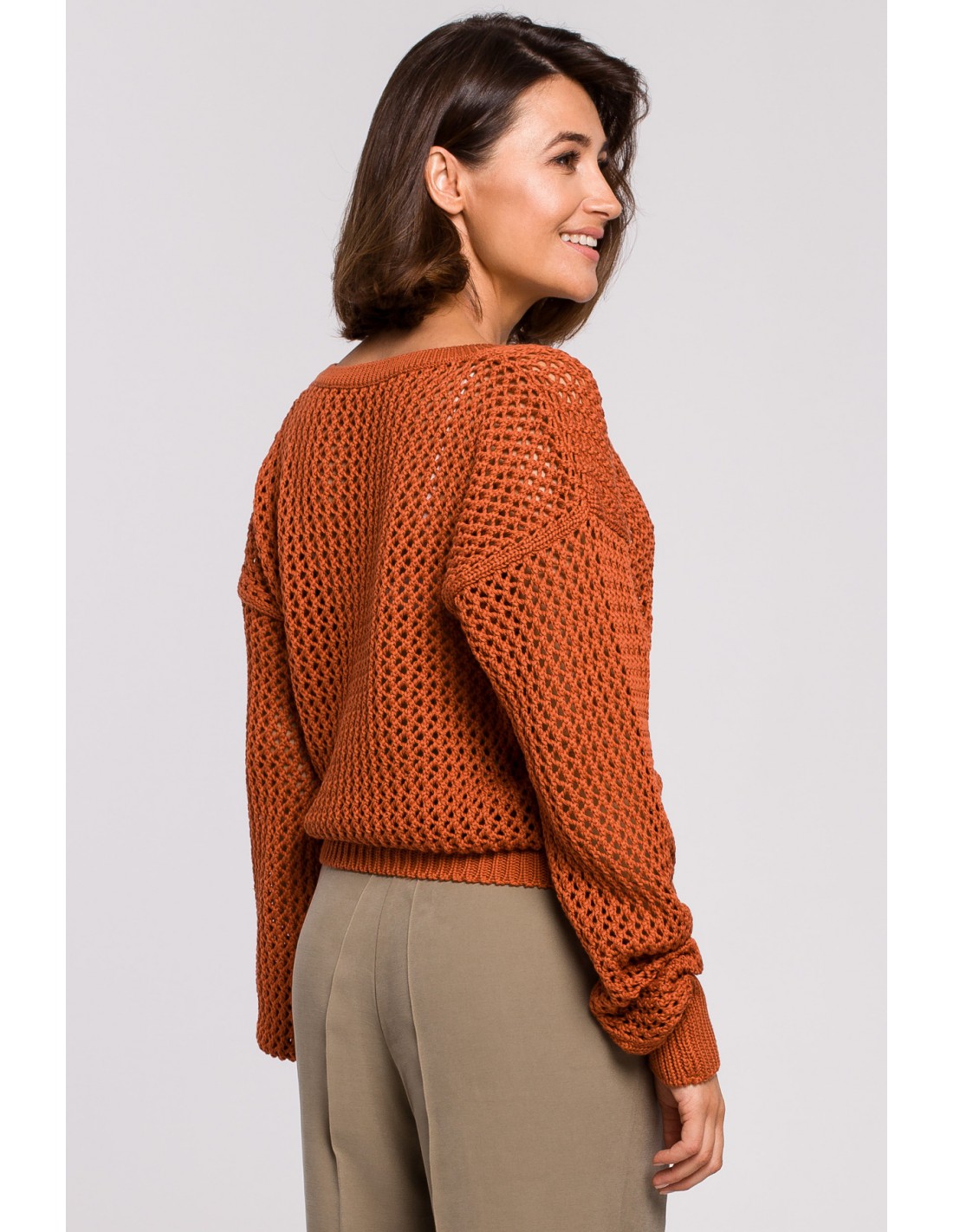 CM5178 Sweter z dużymi oczkami - pomarańczowy