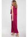 CM5238 Sukienka maxi z falbaną u góry - śliwkowa