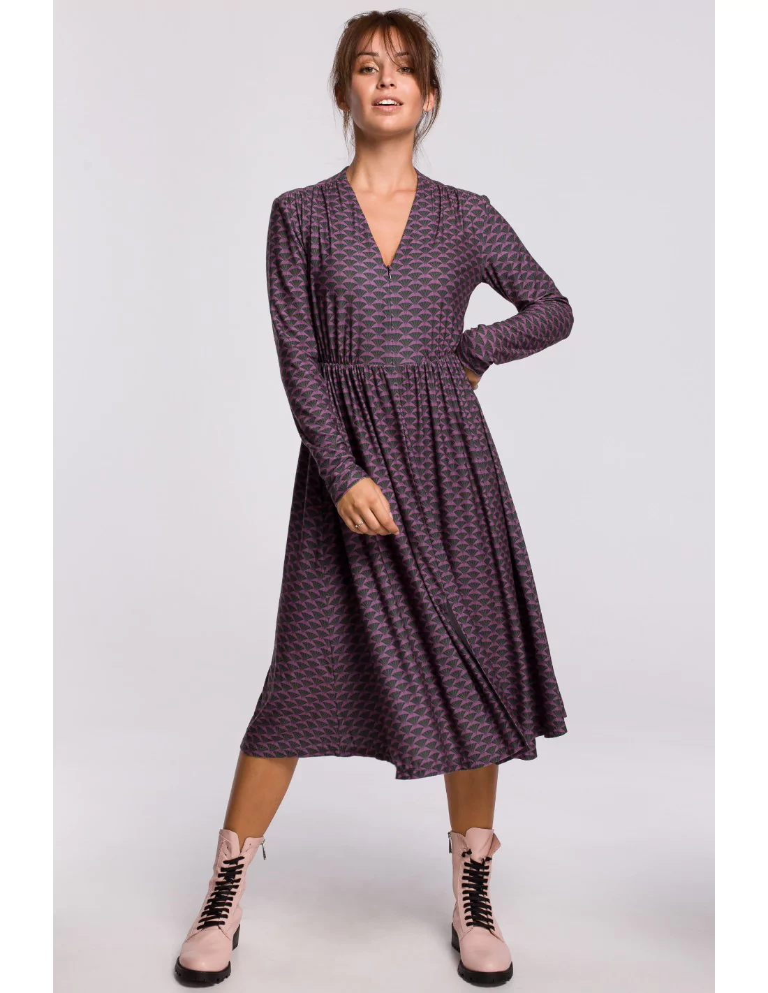 CM5404 Rozkloszowana sukienka we wzór z zamkiem - model 2