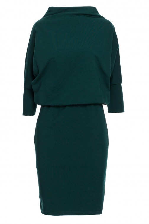 Dopasowana sukienka z kimonowymi rękawami - ciemnozielona
