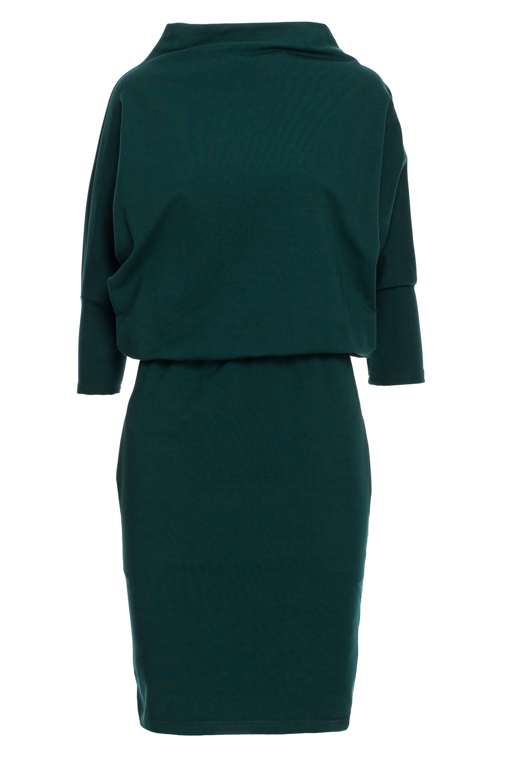 CM5409 Dopasowana sukienka z kimonowymi rękawami - ciemnozielona