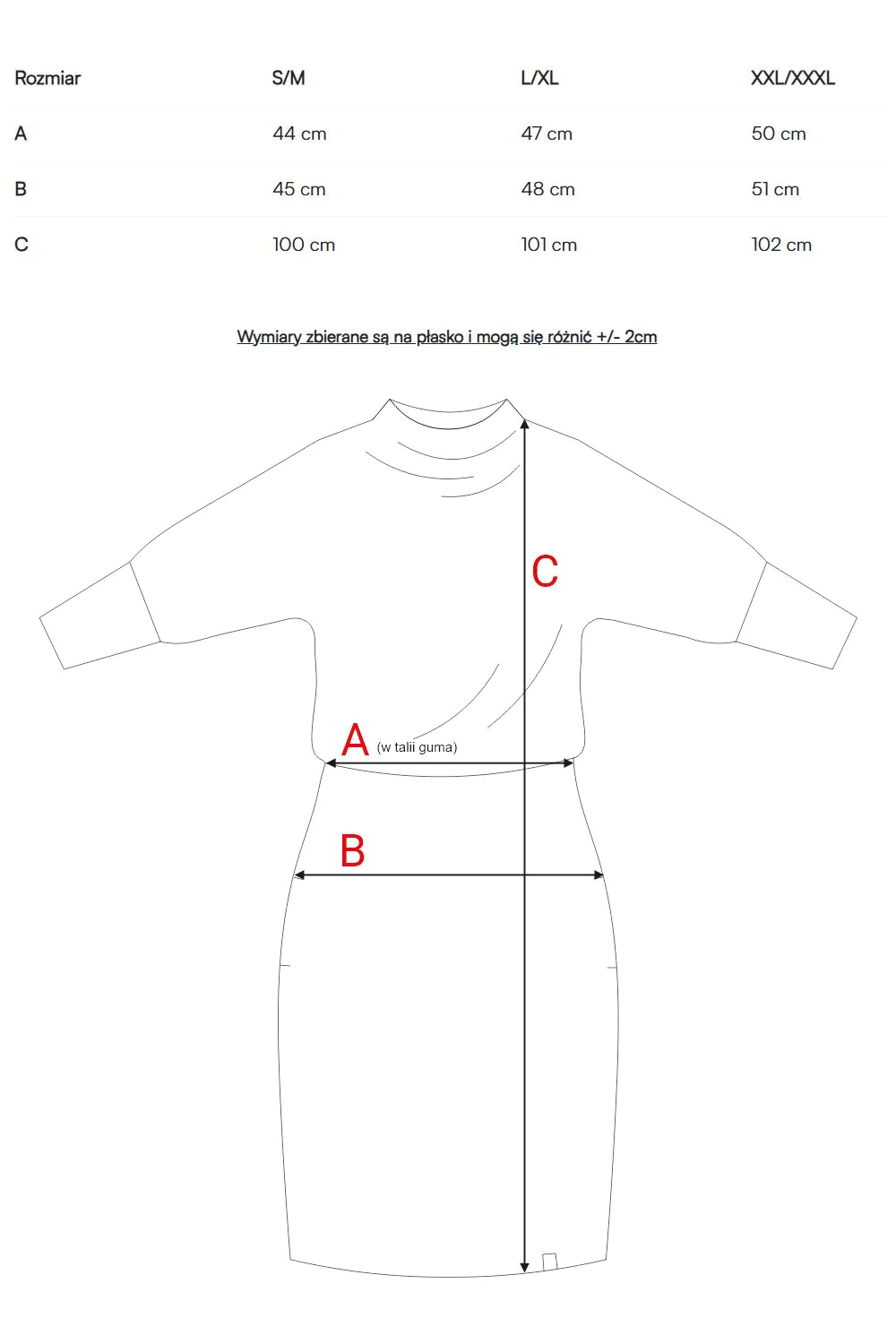 Fason tej sukienki sprawia, że leży ona dobrze na każdej sylwetce. Dopasowana spódnica o ołówkowym kroju i zbluzowana góra z kimonowymi rękawami zakończonymi ściągaczem, a wszystko to uszyte z miękkiej dzianiny bawełnianej - komfort i dobry styl. Wyprodukowano w Polsce.