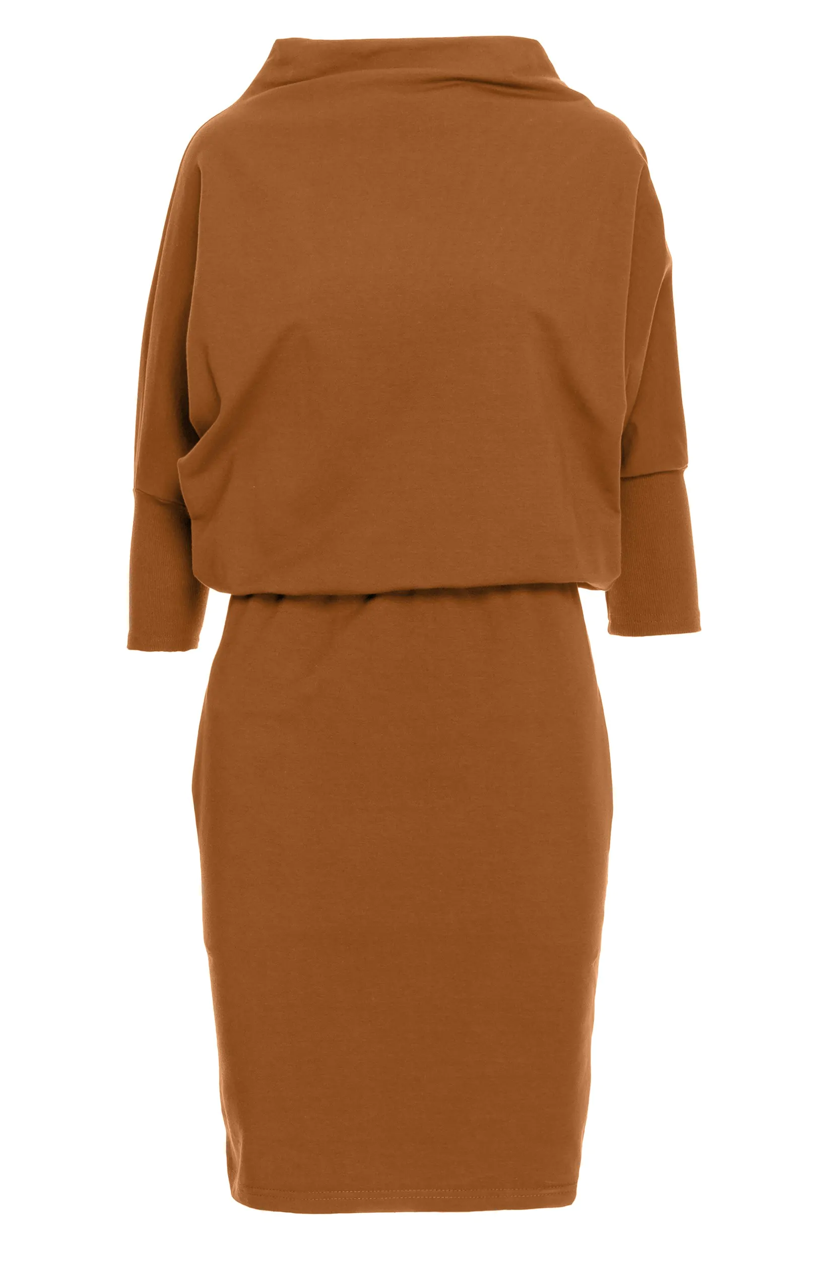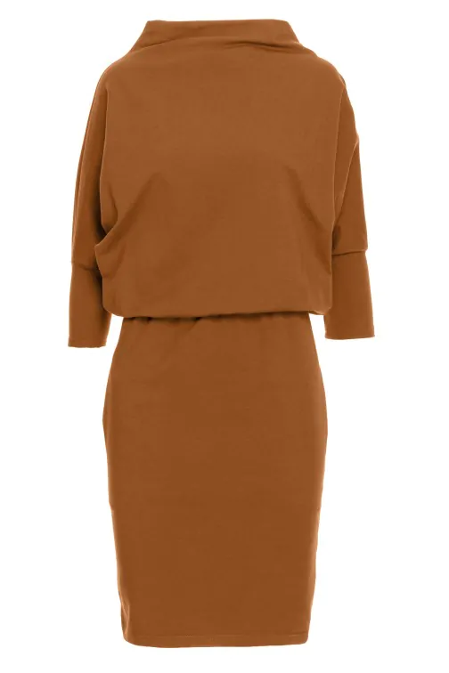 CM5409 Dopasowana sukienka z kimonowymi rękawami - karmelowa