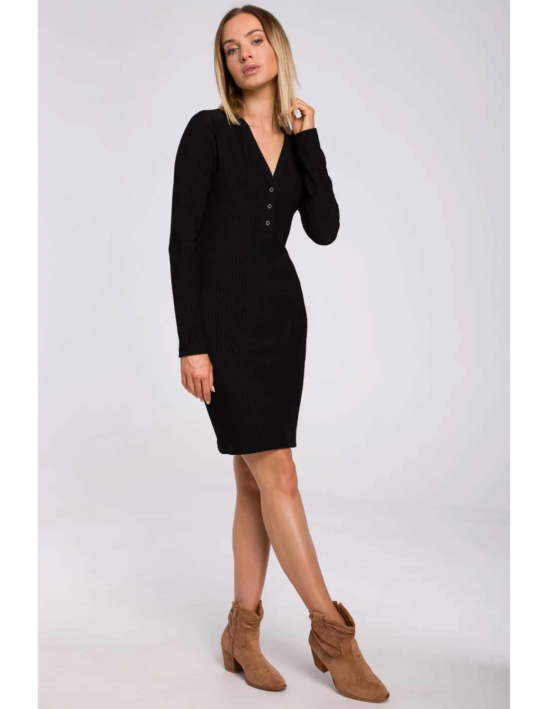 CM5421 Sukienka z dekoltem zapinanym na napy - czarna