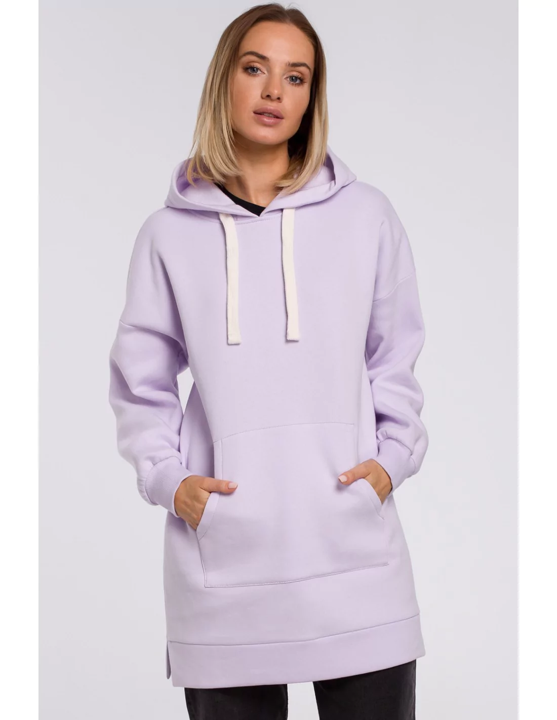 Liliowa bluza oversize z kieszenią typu kangurek to świetny wybór, jeśli potrzebujesz wygodnej, ciepłej, praktycznej i stylowej rzeczy w swojej garderobie. Luźny krój oraz rękawy z obniżoną linią ramion sprawią, że będzie towarzyszyła wszystkim Twoim ruchom. Ocieplenie wewnątrz bluzy da Ci miłe otulenie w chłodniejsze dni, duża kieszeń na przodzie ogrzeje Twoje dłonie, a kaptur ochroni Cię przed wiatrem. Jednolite ubrania mają również ogromny potencjał jeśli chodzi o stylizacje - bardzo łatwo można je połączyć z innymi częściami garderoby, niezależnie od kolorystyki czy nawet kroju. Długa bluza wygląda dobrze również solo - w połączeniu ze sportowymi butami posłuży Ci jako sportowa sukienka. Jak widzisz bluza kangurka to must have w Twojej szafie - powinnaś mieć przynajmniej jedną z nich. Na pewno nie będziesz żałować! Bluza wyprodukowana w Polsce.