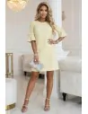 Trapezowa sukienka mini z długimi rękawami - chabrowa