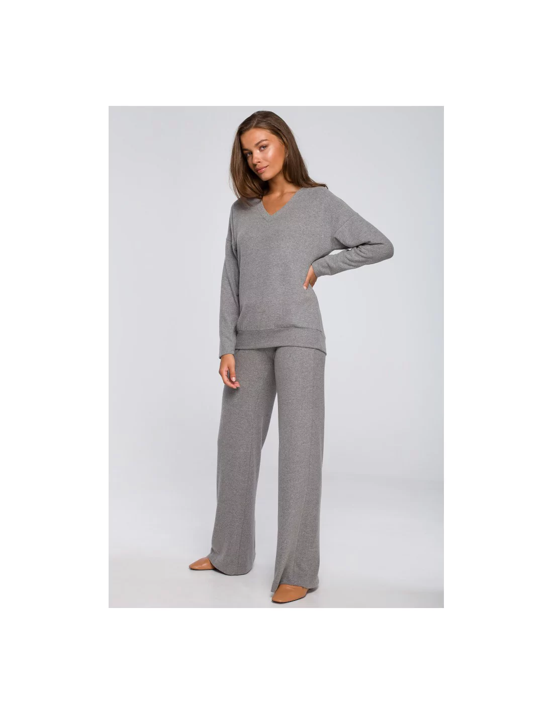 CM5593 Stylowe spodnie dzianinowe - szare