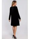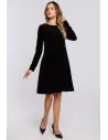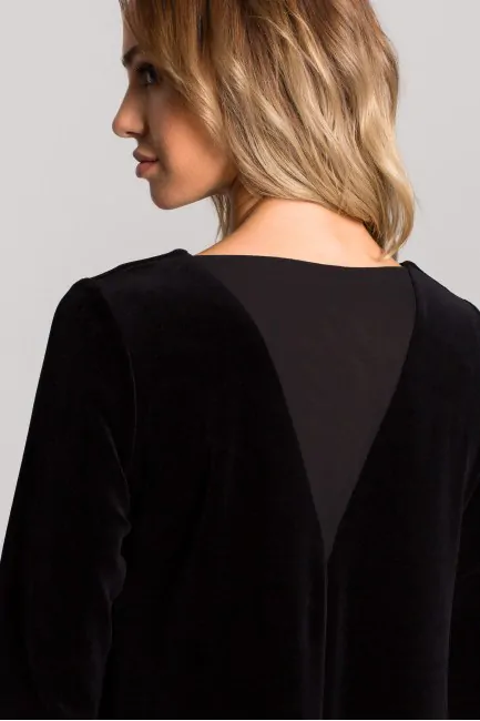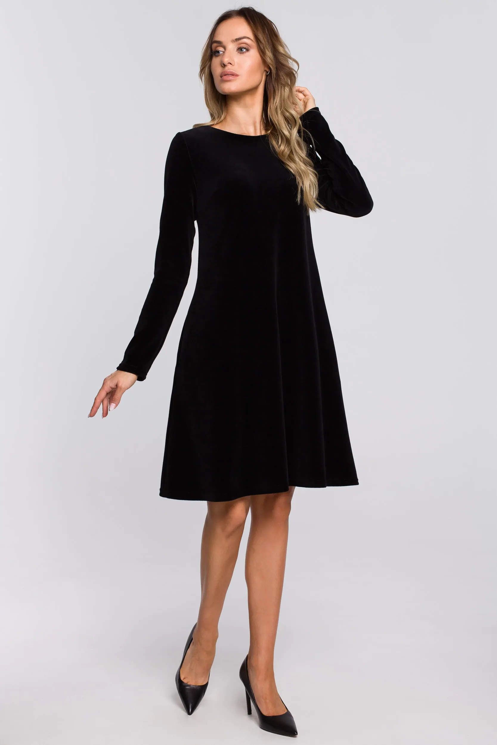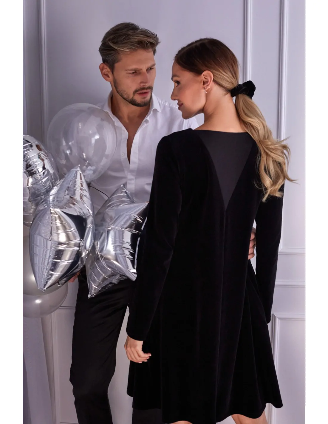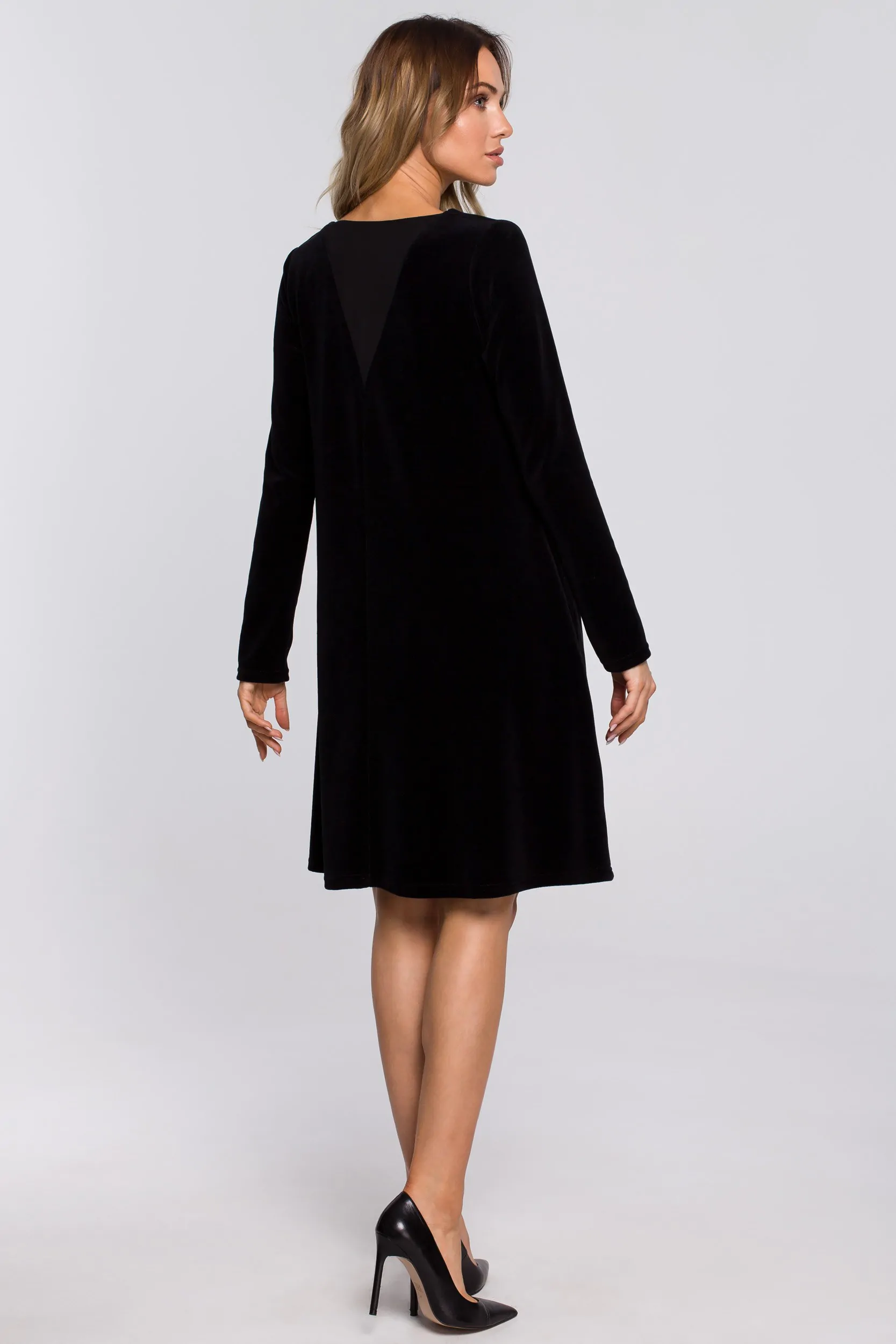 Sukienki welurowe, które kojarzą się z latami 90. teraz są top of the top! To totalny powrót do przeszłości w nowoczesnym wydaniu. Nasza propozycja to czarna welurowa sukienka o trapezowym kroju, która nie dość, że idealnie odzwierciedla najnowsze trendy to dobrze prezentuje się na każdej sylwetce. Szyfonowa, geometryczna wstawka na plecach dodaje jej zmysłowości. Długość do kolan będzie podstawą outfitów o eleganckim charakterze. Zainspiruj się stylizacjami z czerwonego dywanu i dobierz do niej modne szpilki lub botki na obcasie oraz kopertówkę. Jeśli dodasz jeszcze biżuterię to uzupełnisz swoją kreację na maxa! Gładkie modele w ponadczasowych kolorach dają duże pole do popisu jeśli chodzi o dobór dodatków. Jedno jest pewne - efekt wow gwarantowany! Sukienką wyprodukowaliśmy w Polsce z miękkiego i przyjemnego w dotyku oraz dla ciała weluru.