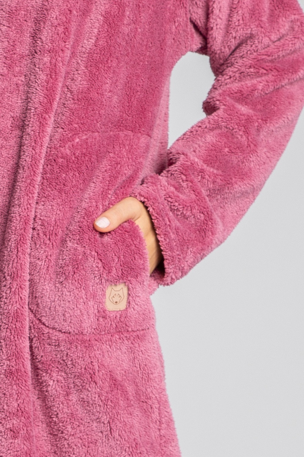 Misja - w domu wygodnie, ciepło i przytulnie. Z naszą obszerną sukienką z wysokim kołnierzem i kieszeniami narzuconą na piżamę, czy na ciało prosto po kąpieli, to misja wykonalna. Wyprodukowano w Polsce.