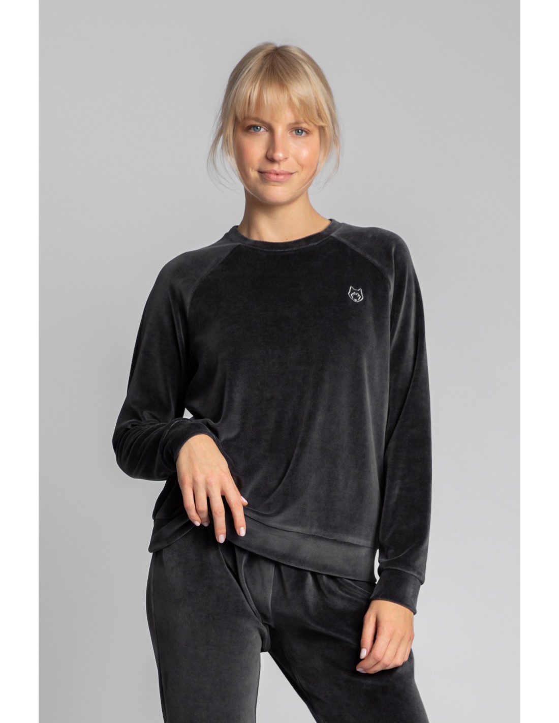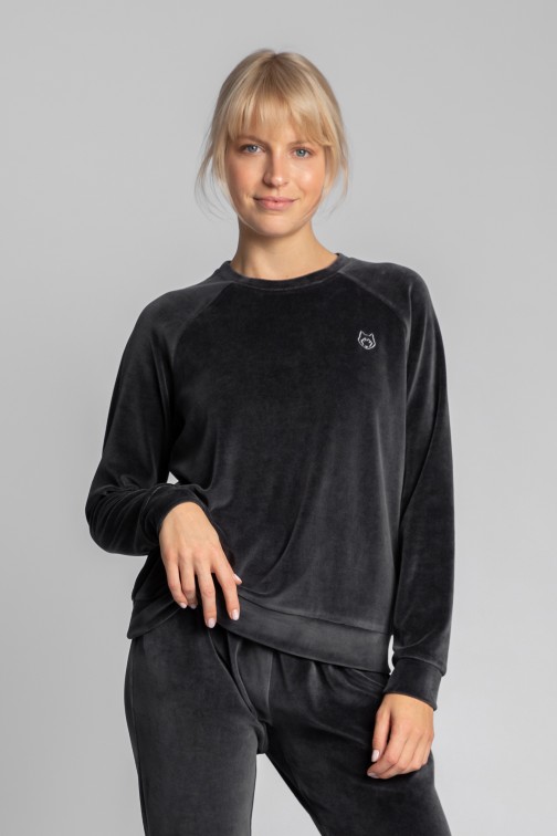 CM5705 Welurowa bluza z raglanowymi rękawami - grafitowa
